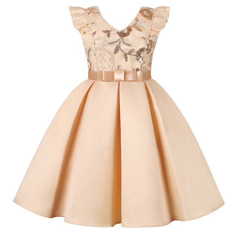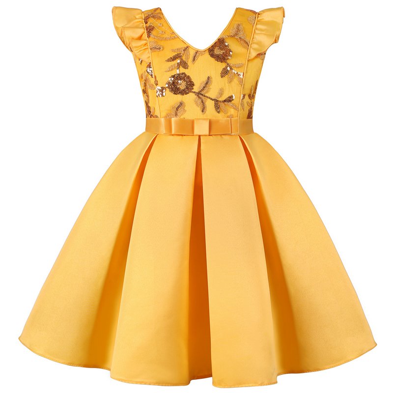 Children Kids Baby Fashion Girls Ruffle Sleeve Sequin Bow Princess Festival Party Dress