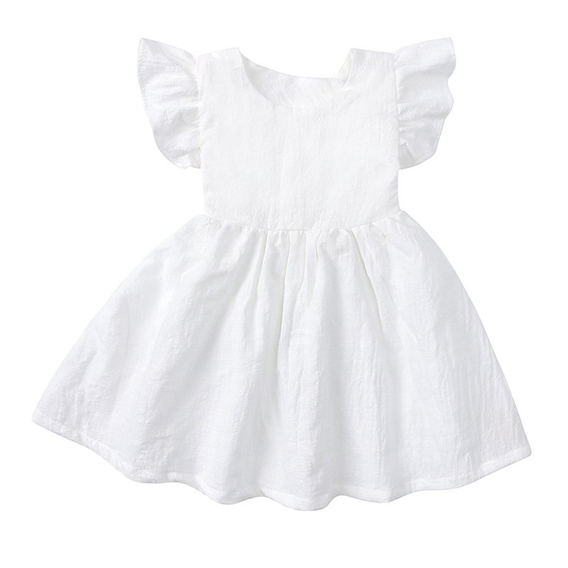 Children Kids Baby Fashion Girls Ruffle Sleeve Solid Color Bowknot Princess Dress
