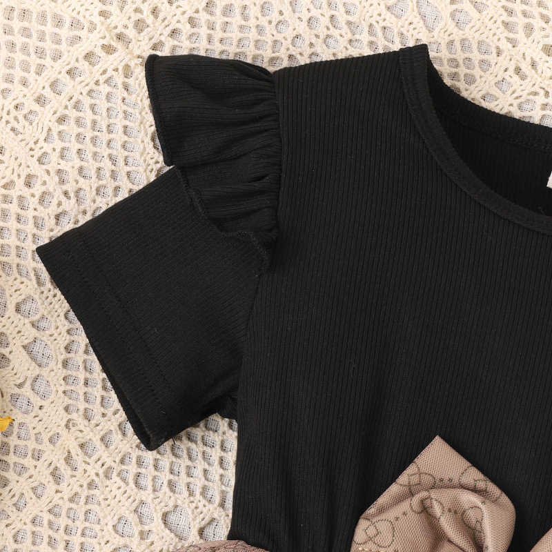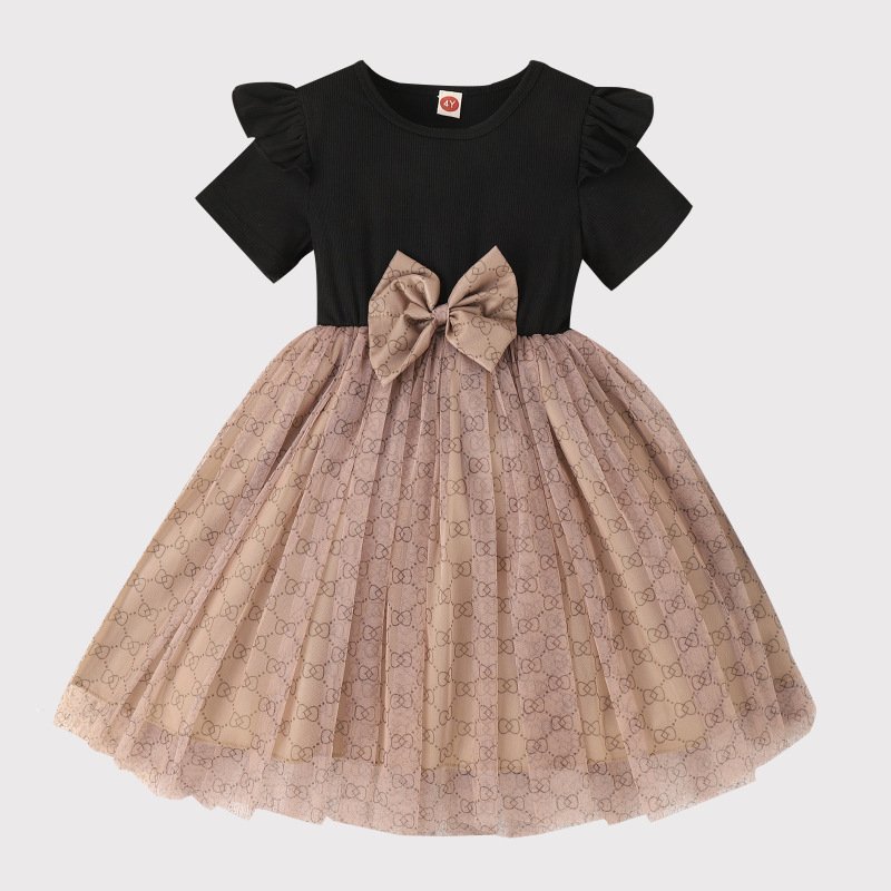 Children Kids Baby Fashion Girls Short Sleeve Bowknot Print Mesh Dress