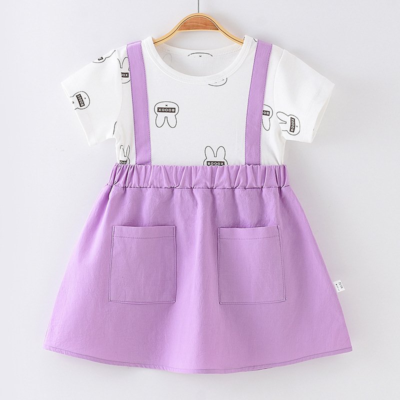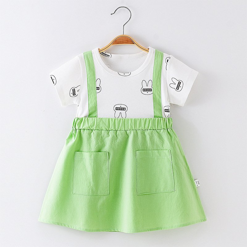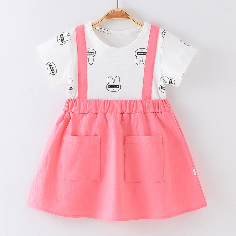 Children Kids Baby Fashion Girls Short Sleeve Bunny Print Patchwork Dress
