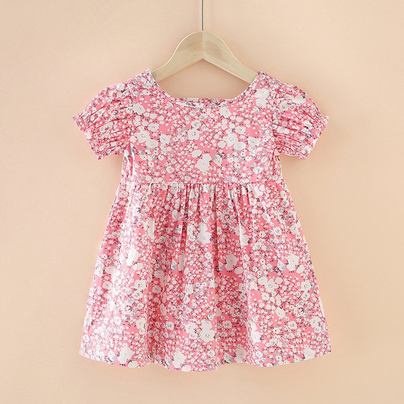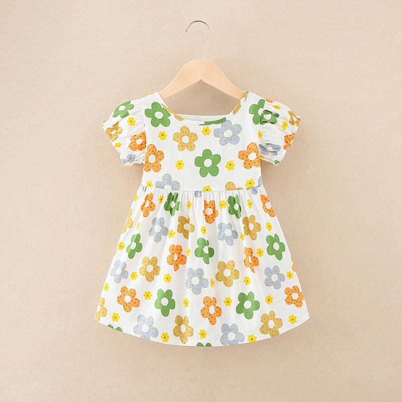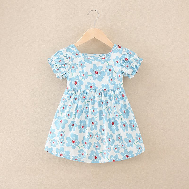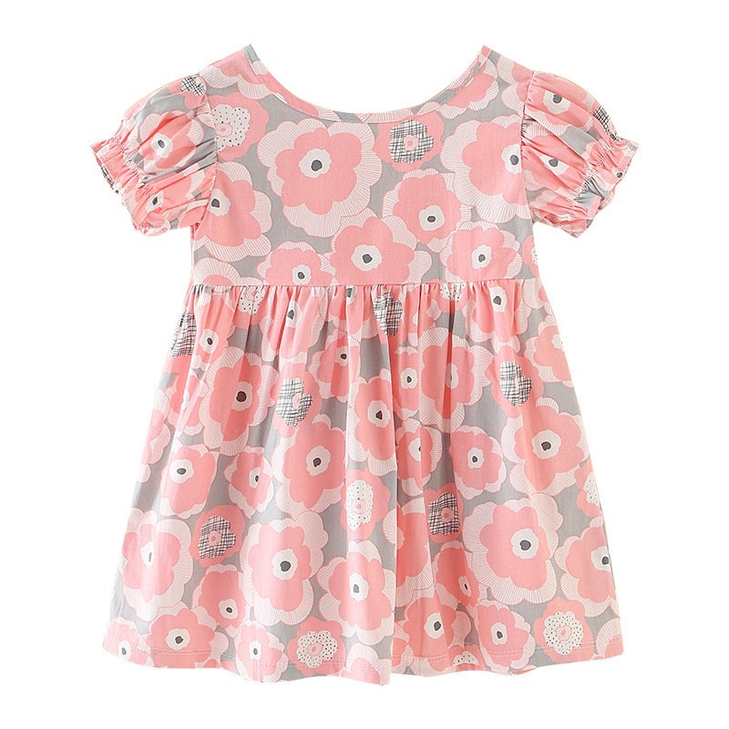 Children Kids Baby Fashion Girls Short Sleeve Flower Print Casual Dress