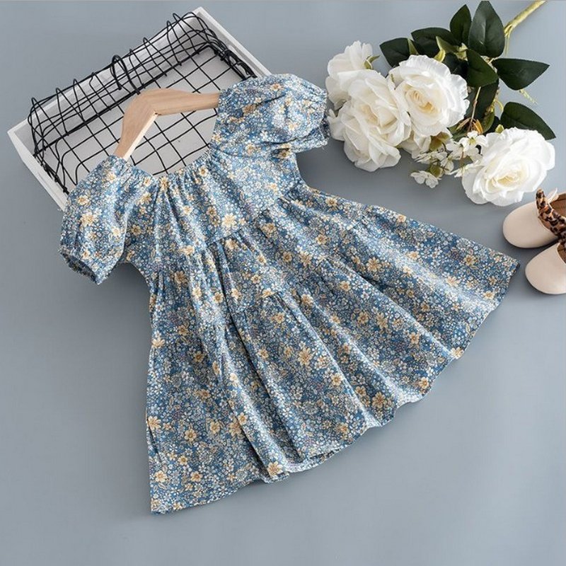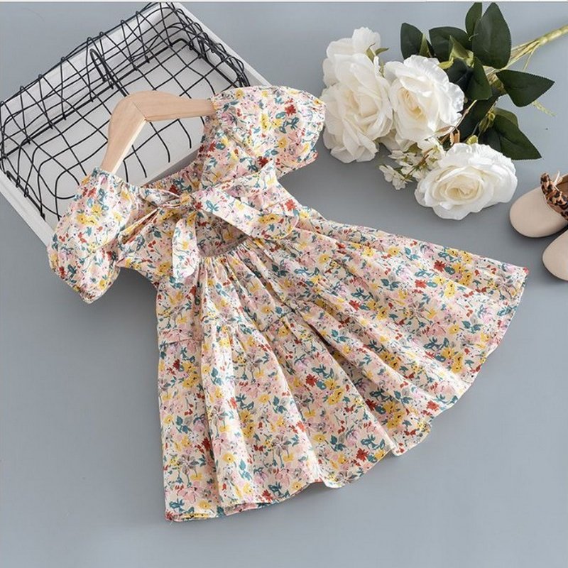 Children Kids Baby Fashion Girls Short Sleeve Flower Print Princess Dress