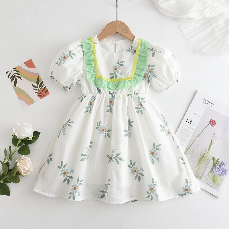 Children Kids Baby Fashion Girls Short Sleeve Flower Print Princess Dress