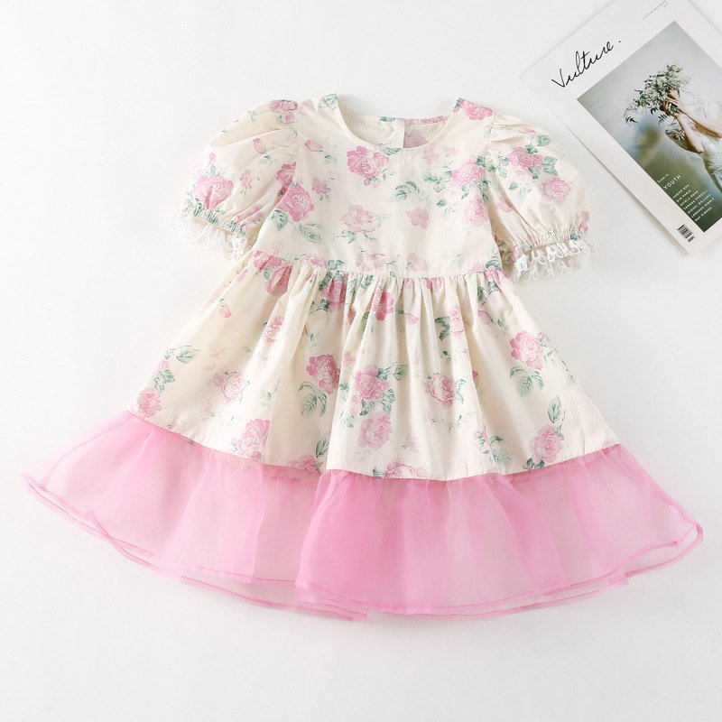 Children Kids Baby Fashion Girls Short Sleeve Flower Print Stitching Dress