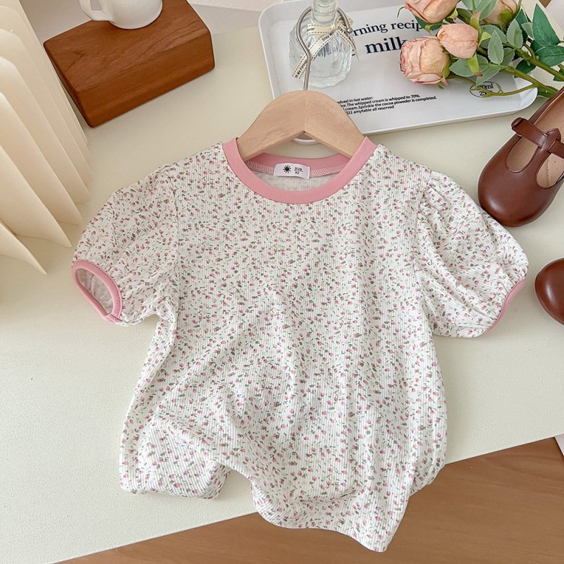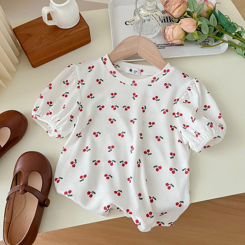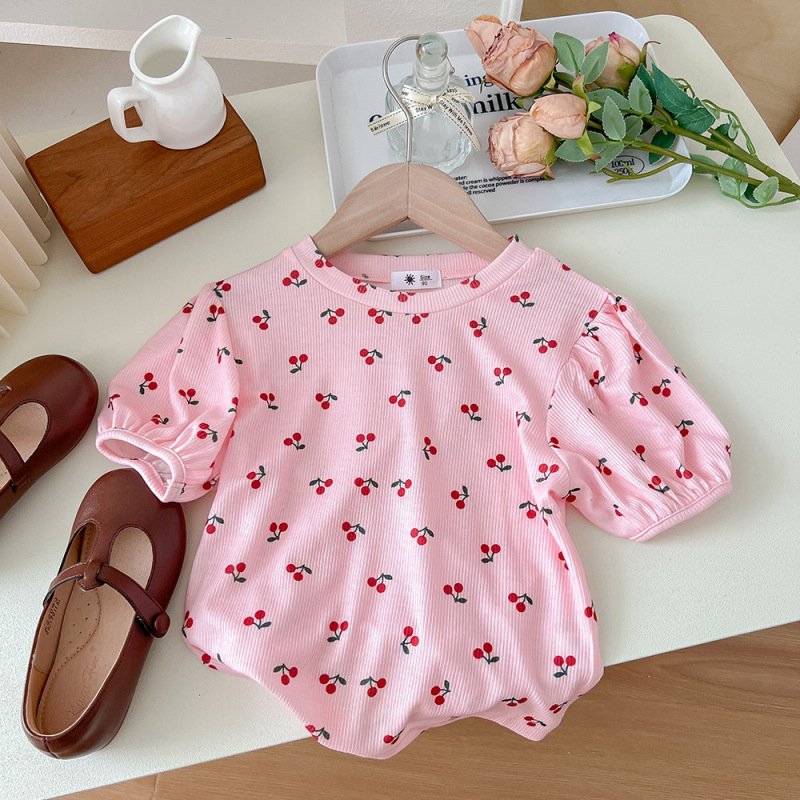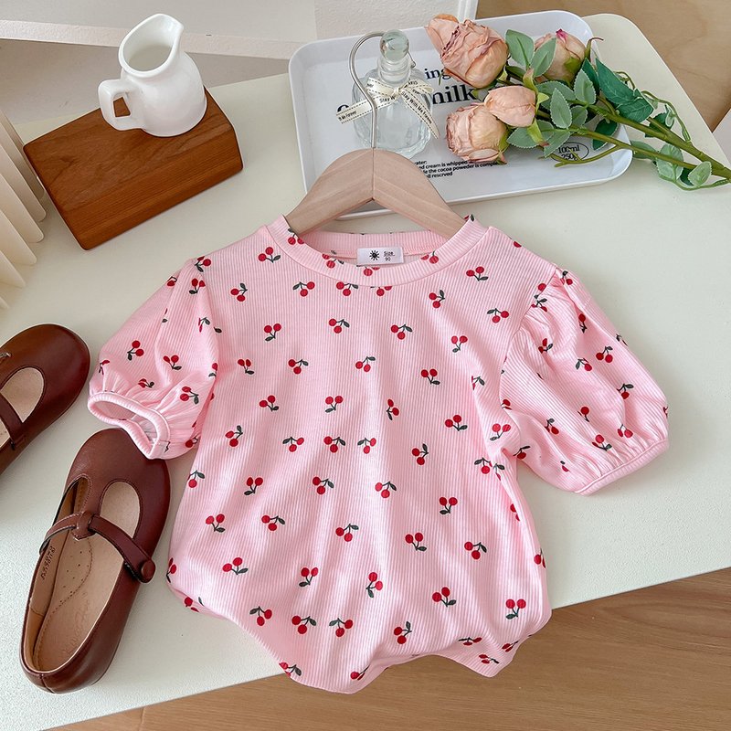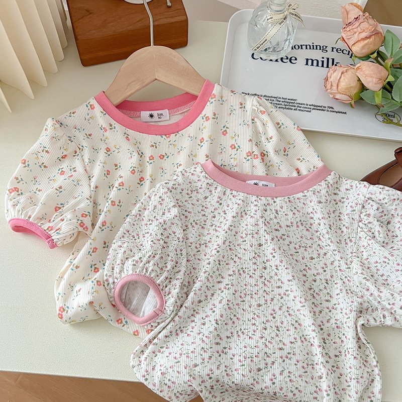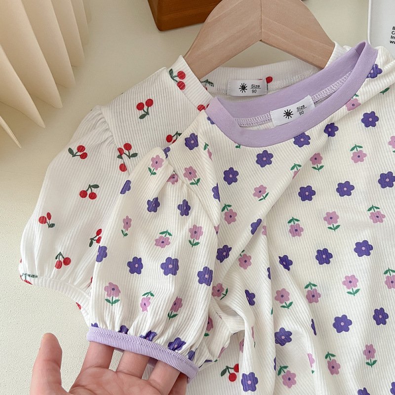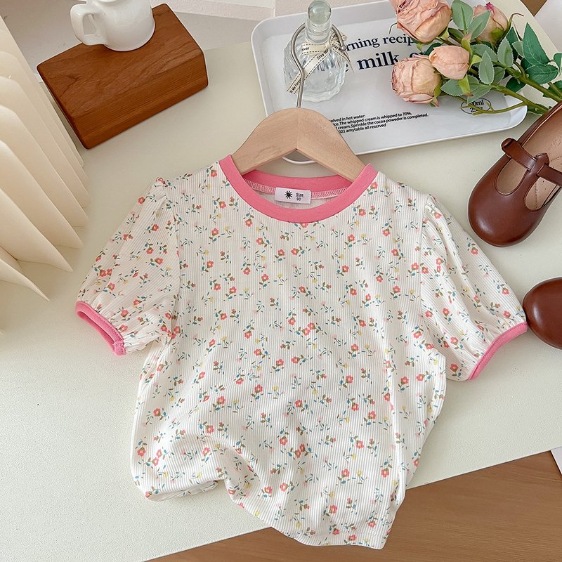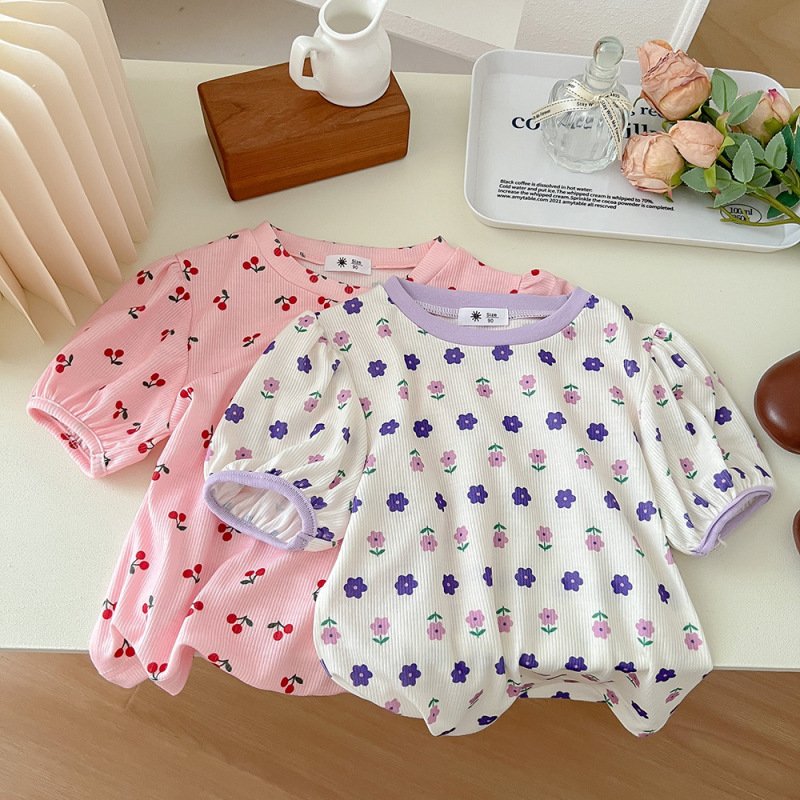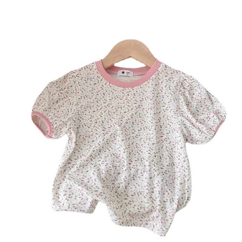 Children Kids Baby Fashion Girls Short Sleeve Flower Print T-Shirt