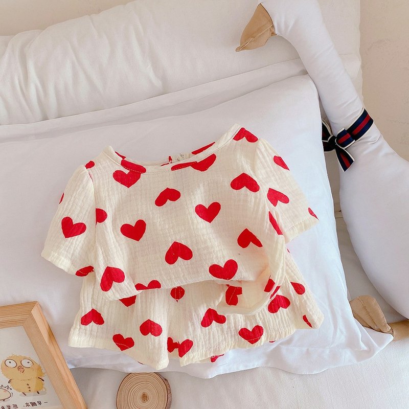 Children Kids Baby Fashion Girls Short Sleeve Love Print Short Sleeve Top And Shorts 2pcs Set