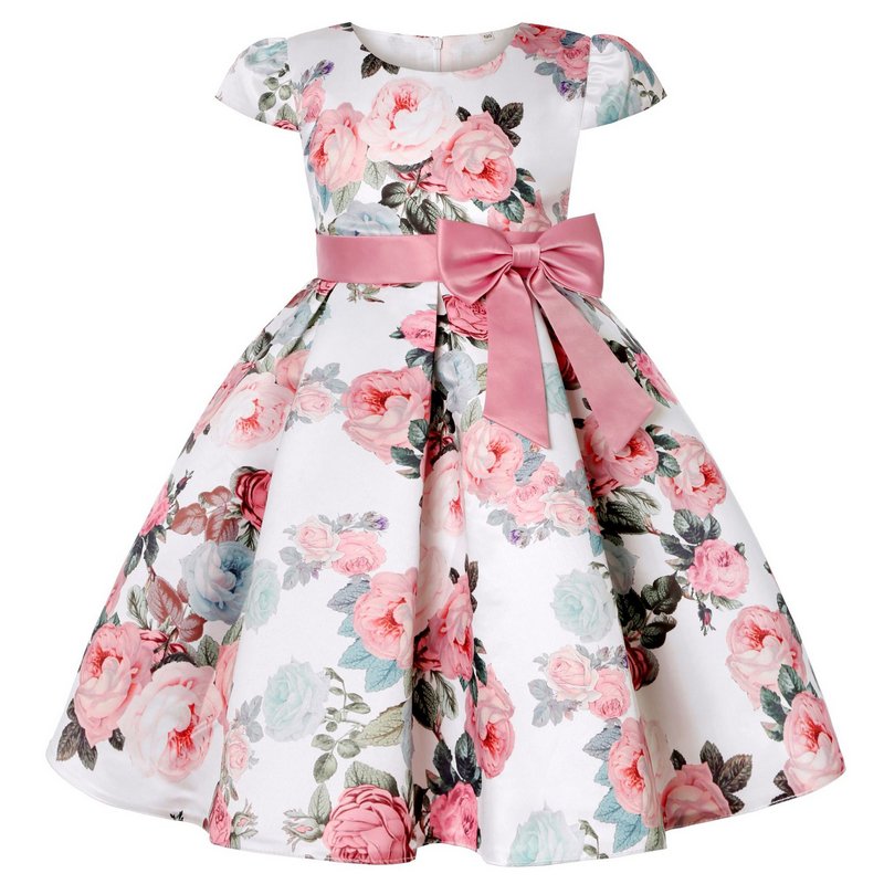 Children Kids Baby Fashion Girls Short Sleeve Retro Flower Print Bow Princess Festival Party Dress