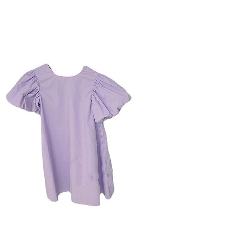 Children Kids Baby Fashion Girls Short Sleeve Solid Color Back Bow Knot Dress