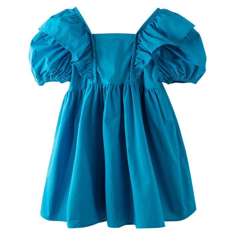 Children Kids Baby Fashion Girls Short Sleeve Solid Color Princess Dress
