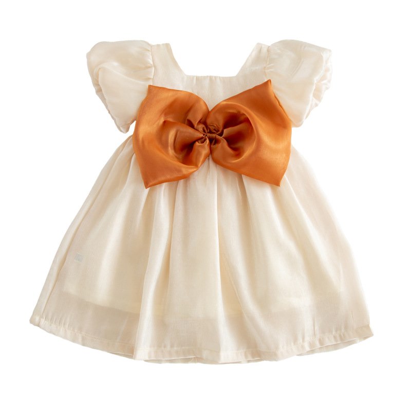 Children Kids Baby Fashion Girls Short Sleeve Sweet Big Bowknot Mesh Princess Dress