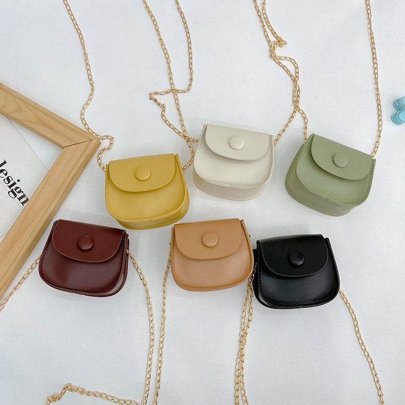 Children Kids Baby Fashion Girls Simple Solid Color Chain Messenger Crossbody Bag