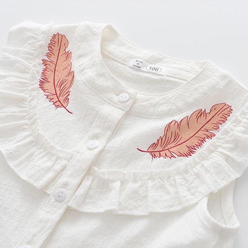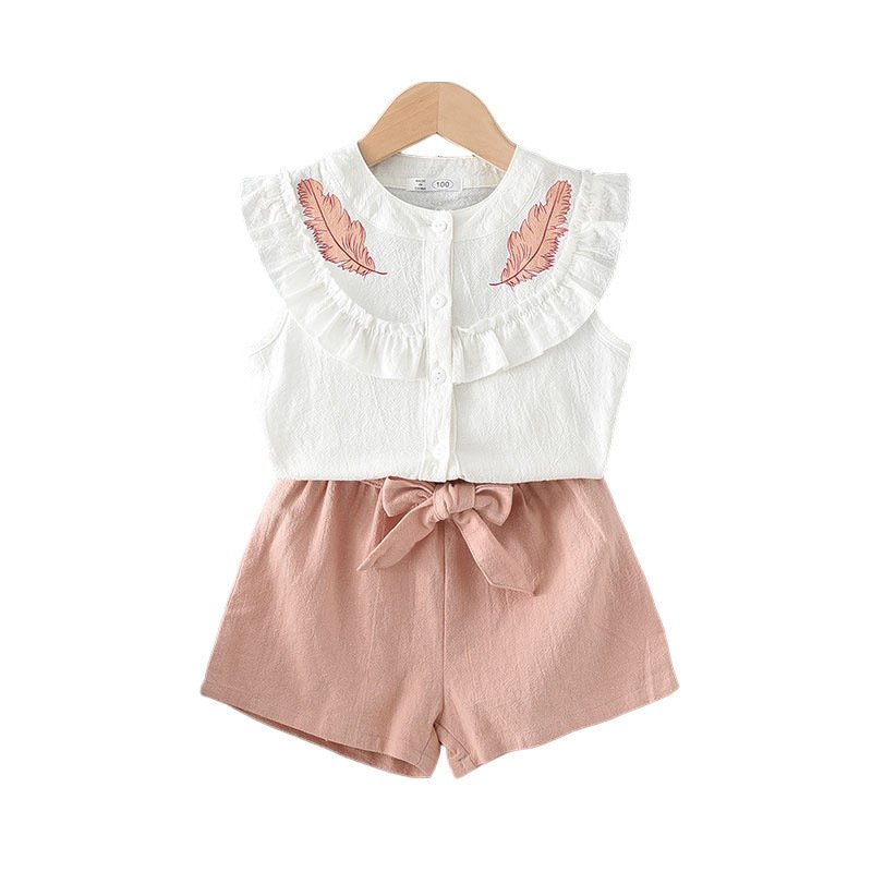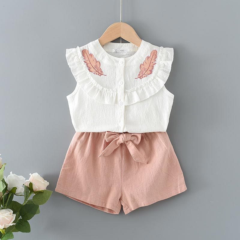 Children Kids Baby Fashion Girls Sleeveless Embroidered Feather Top And Shorts 2pcs Set