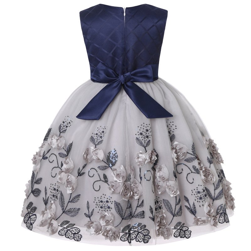 Children Kids Baby Fashion Girls Sleeveless Embroidered Flower Bow Mesh Princess Festival Party Dress
