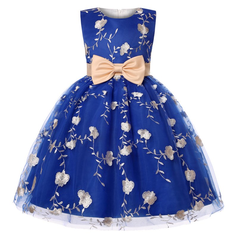 Children Kids Baby Fashion Girls Sleeveless Embroidered Flower Bow Mesh Princess Festival Party Dress