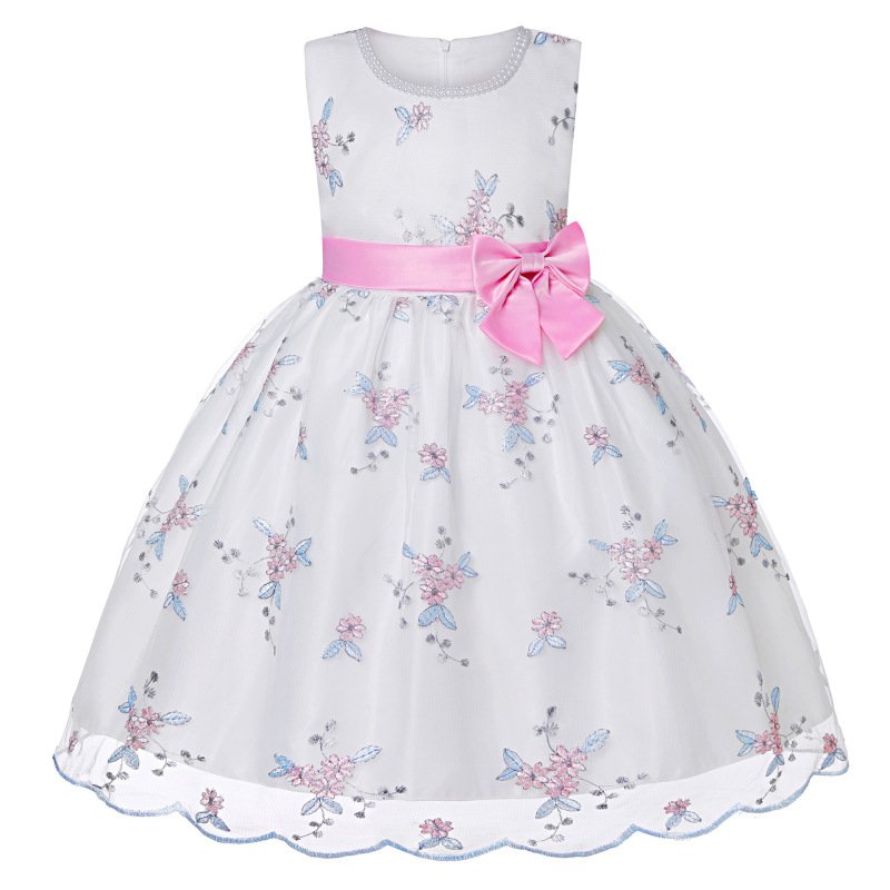 Children Kids Baby Fashion Girls Sleeveless Embroidered Flower Bowknot Mesh Princess Festival Party Dress