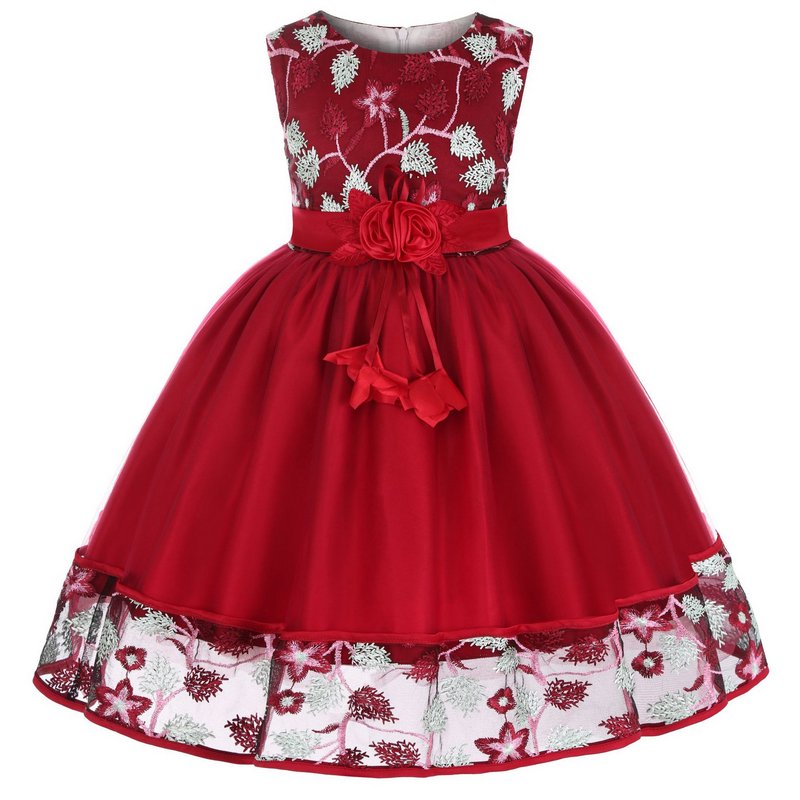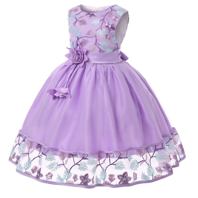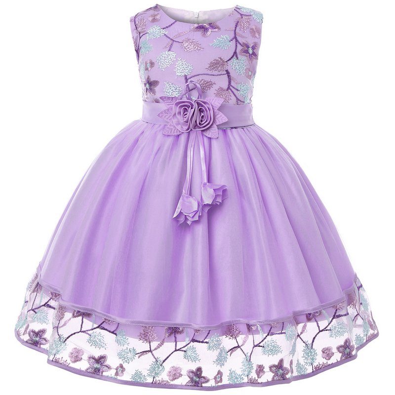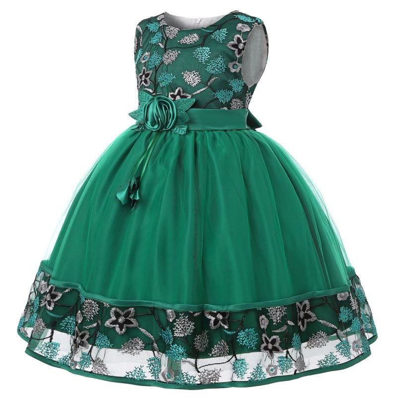 Children Kids Baby Fashion Girls Sleeveless Embroidered Flower Mesh Princess Festival Party Dress