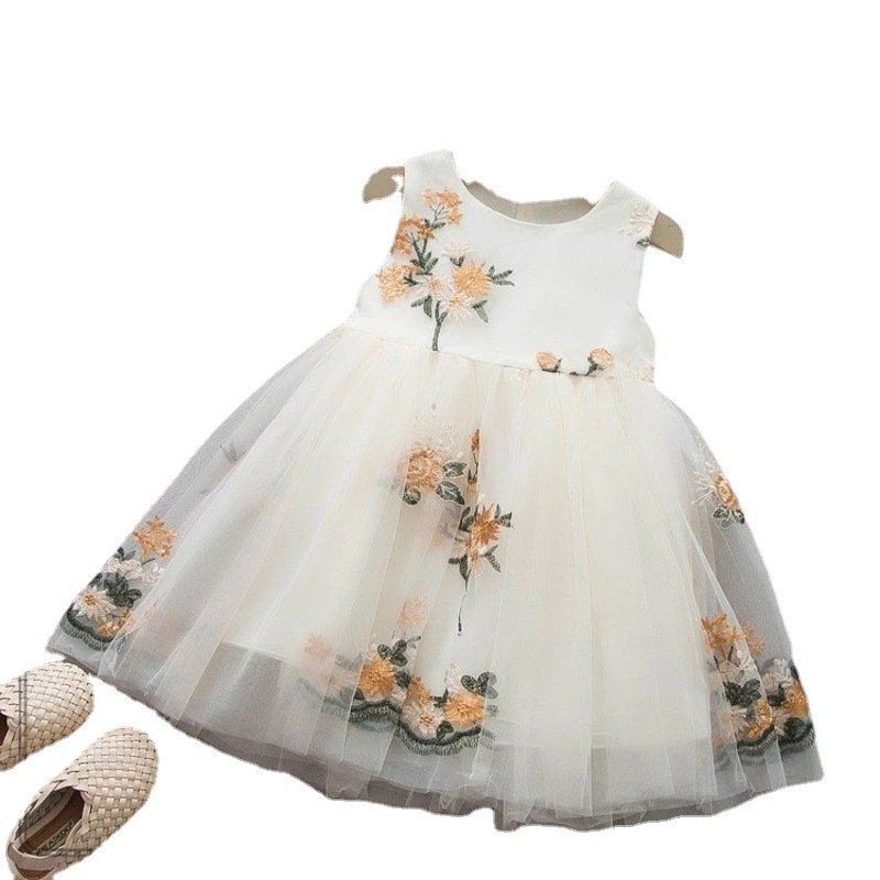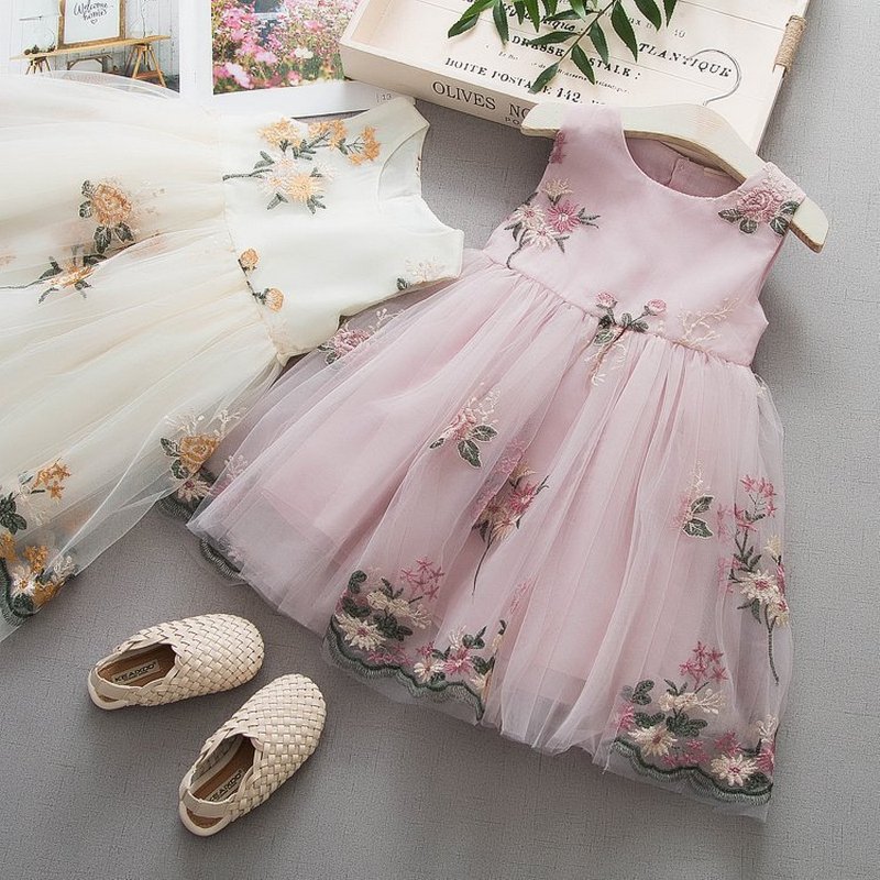 Children Kids Baby Fashion Girls Sleeveless Embroidery Floral Mesh Princess Dress