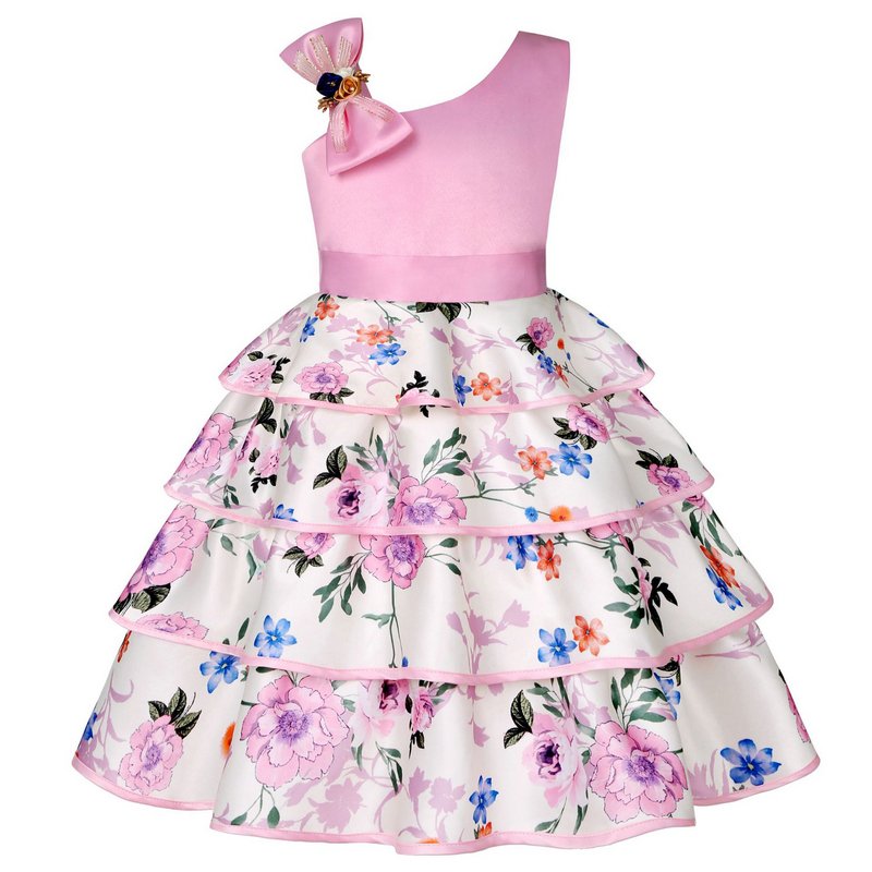 Children Kids Baby Fashion Girls Sleeveless Flower Print Bowknot Princess Festival Party Dress