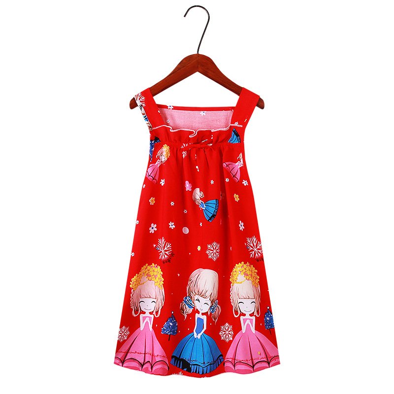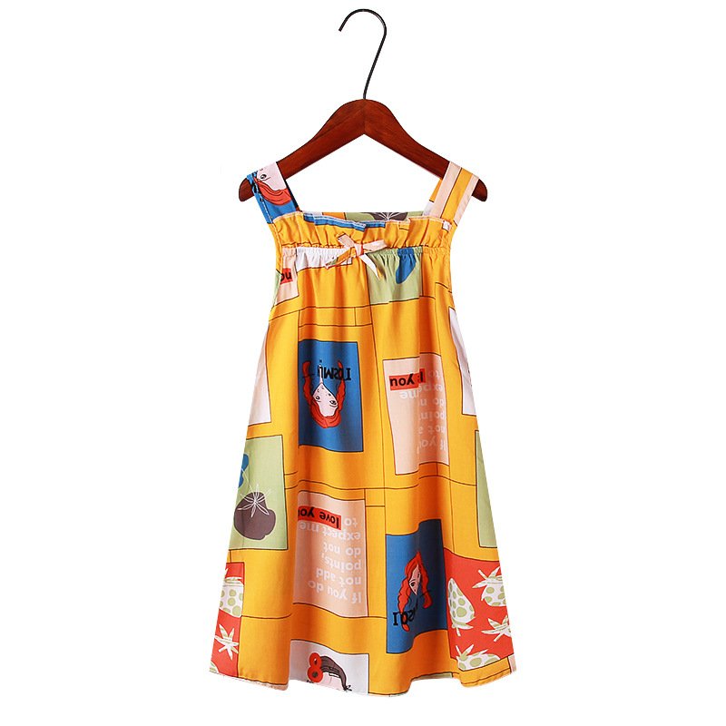 Children Kids Baby Fashion Girls Sleeveless Print Suspender Dress