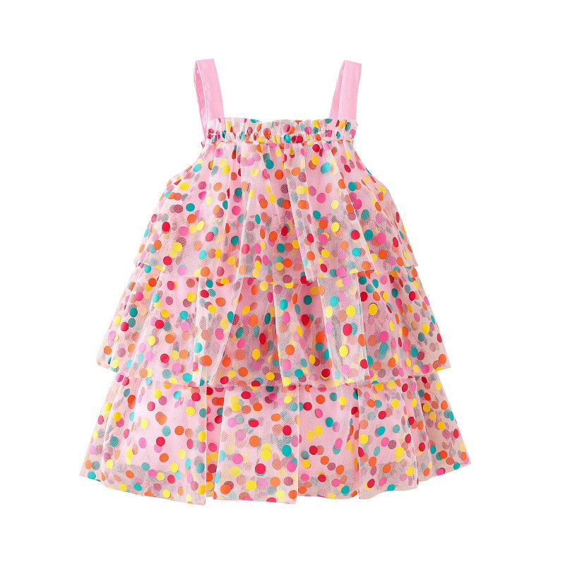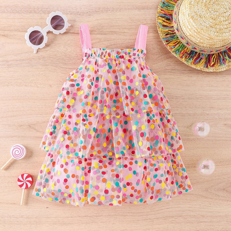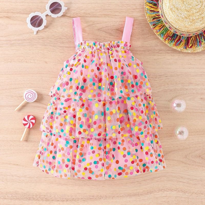 Children Kids Baby Fashion Girls Sleeveless Rainbow Dot Print Mesh Dress