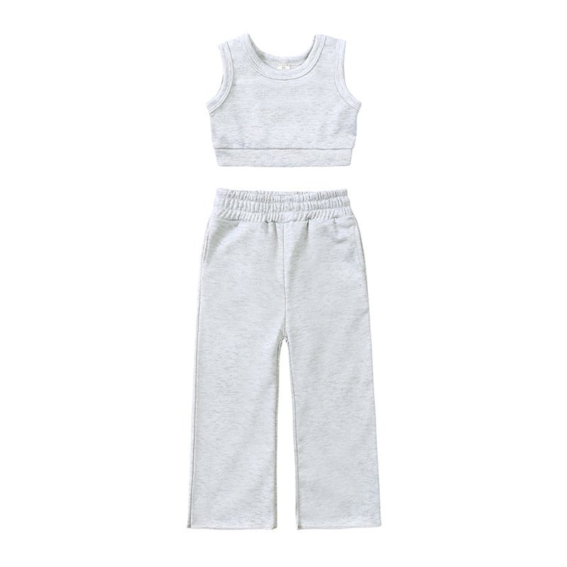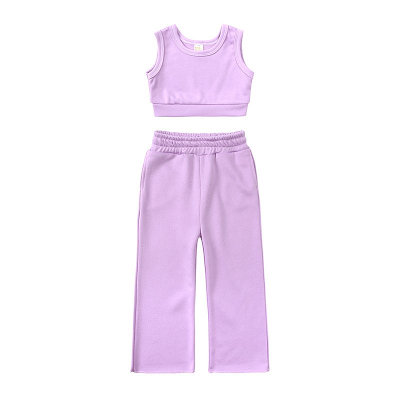 Children Kids Baby Fashion Girls Sleeveless Solid Color T-Shirt And Pants 2pcs Set