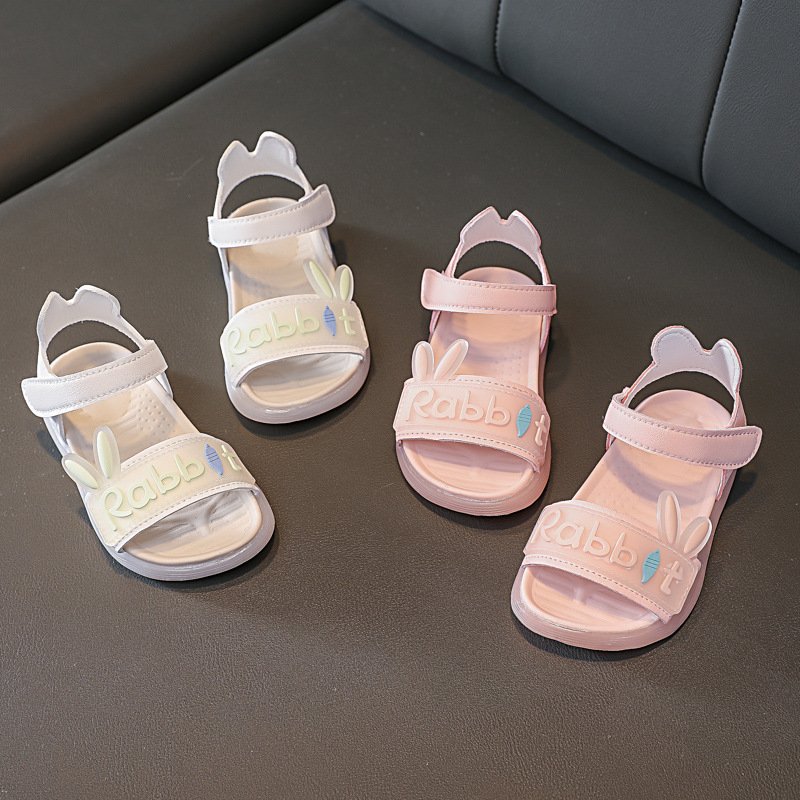 Children Kids Baby Fashion Girls Soft Bottom Cartoon Rabbit Velcro Sandals Shoes