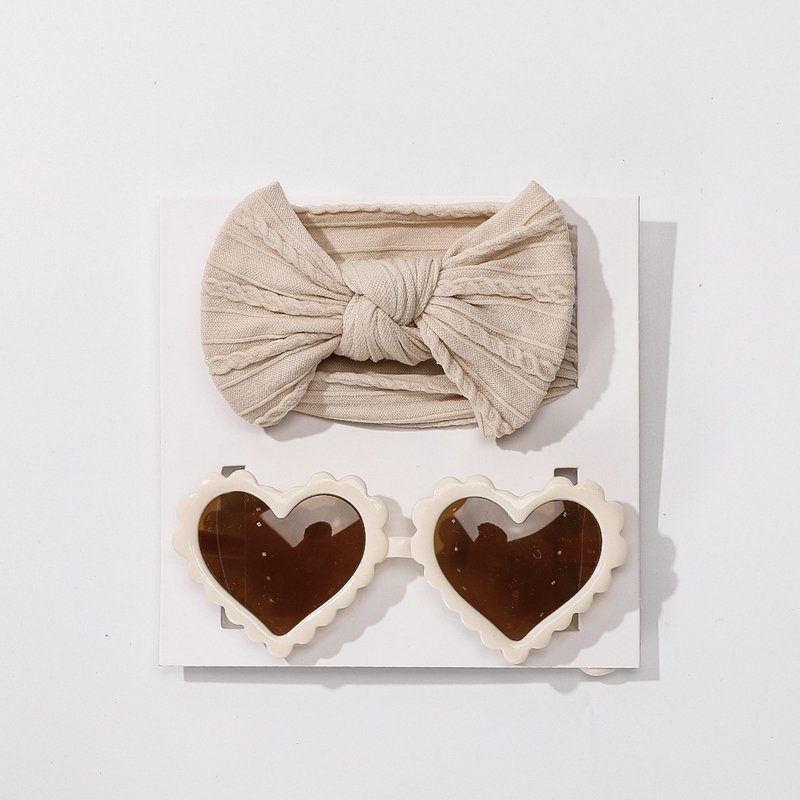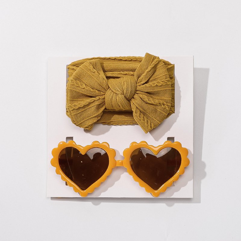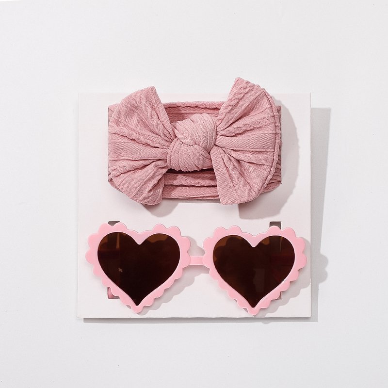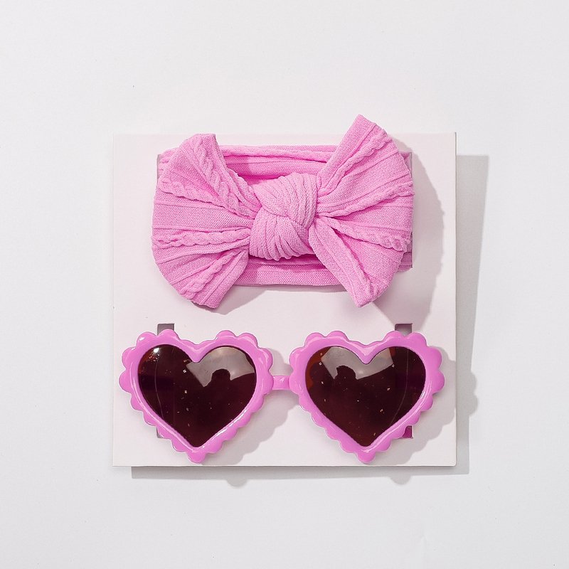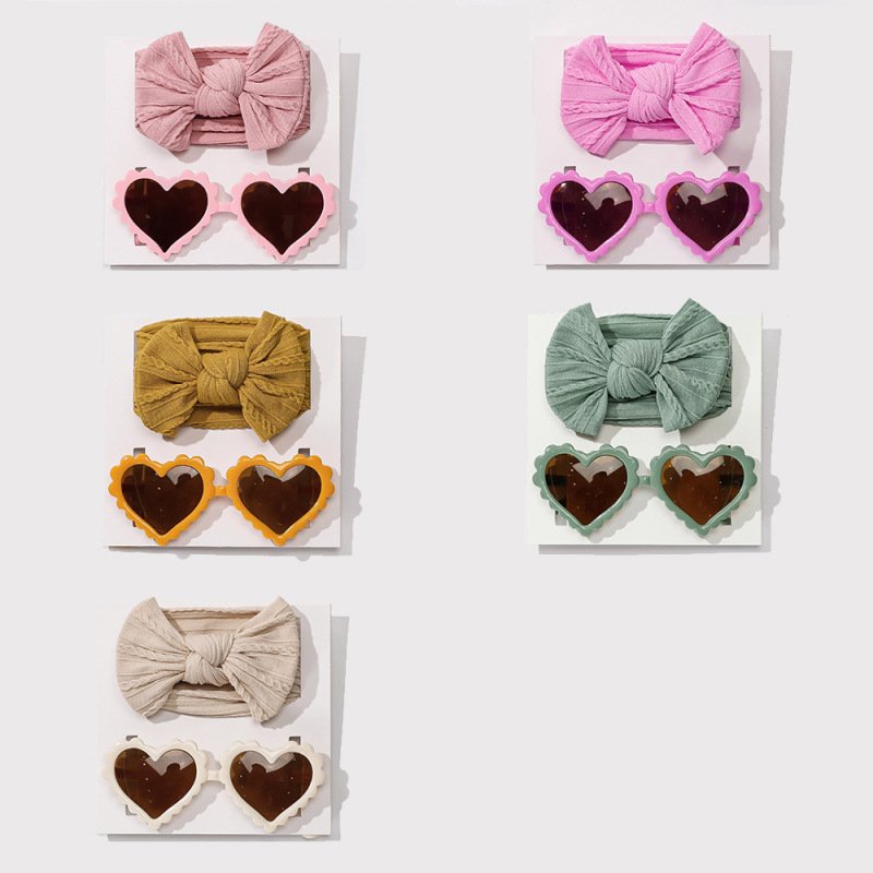 Children Kids Baby Fashion Girls Solid Color Bowknot Elastic Headband And Sunglasses Set
