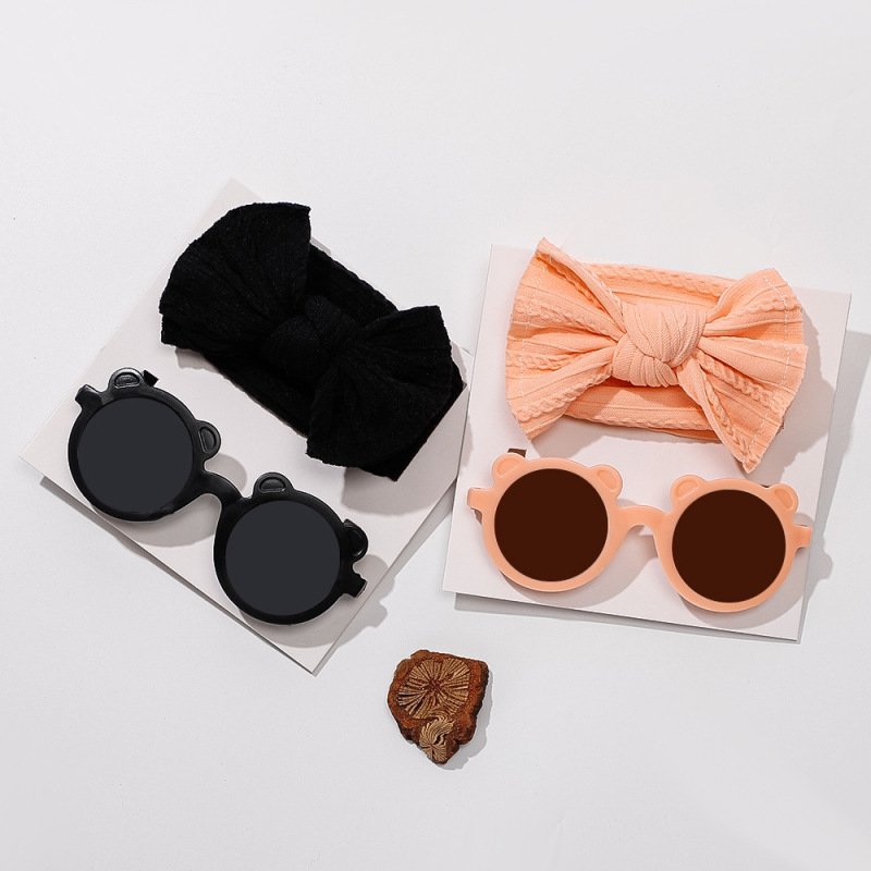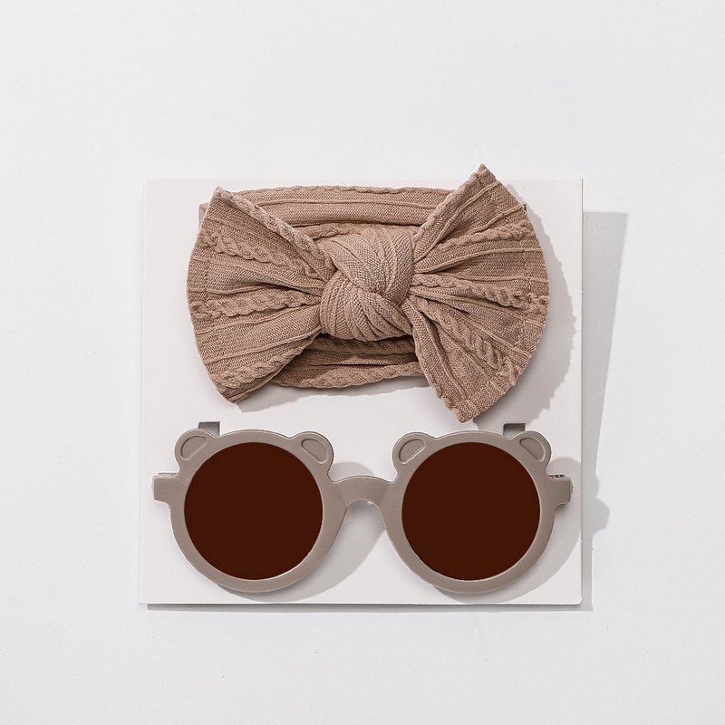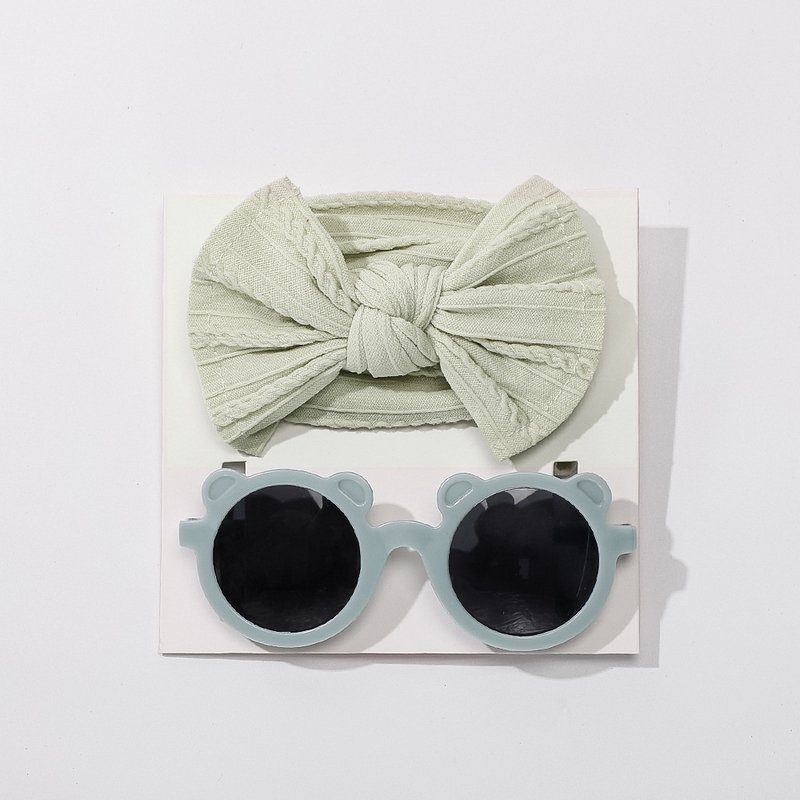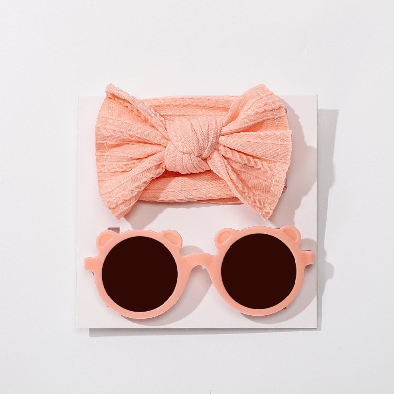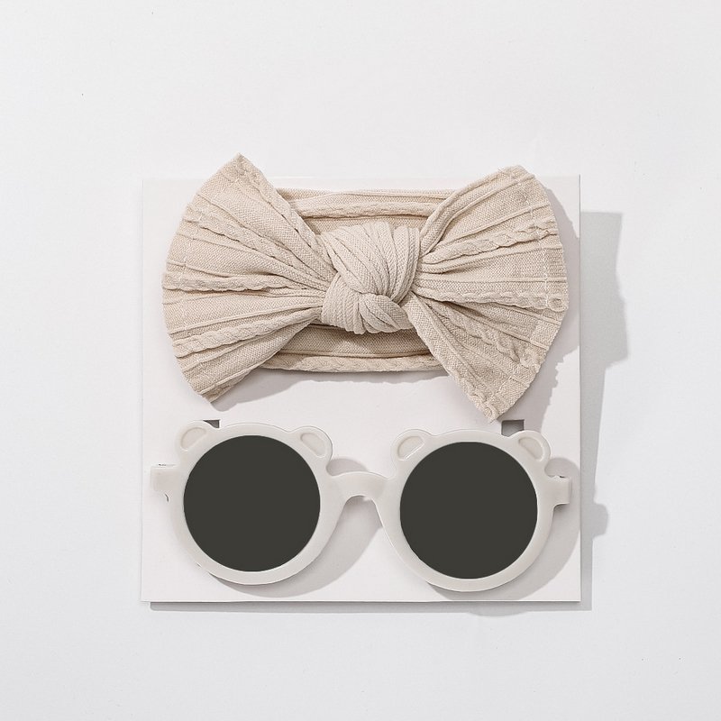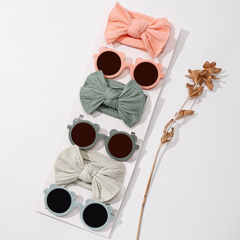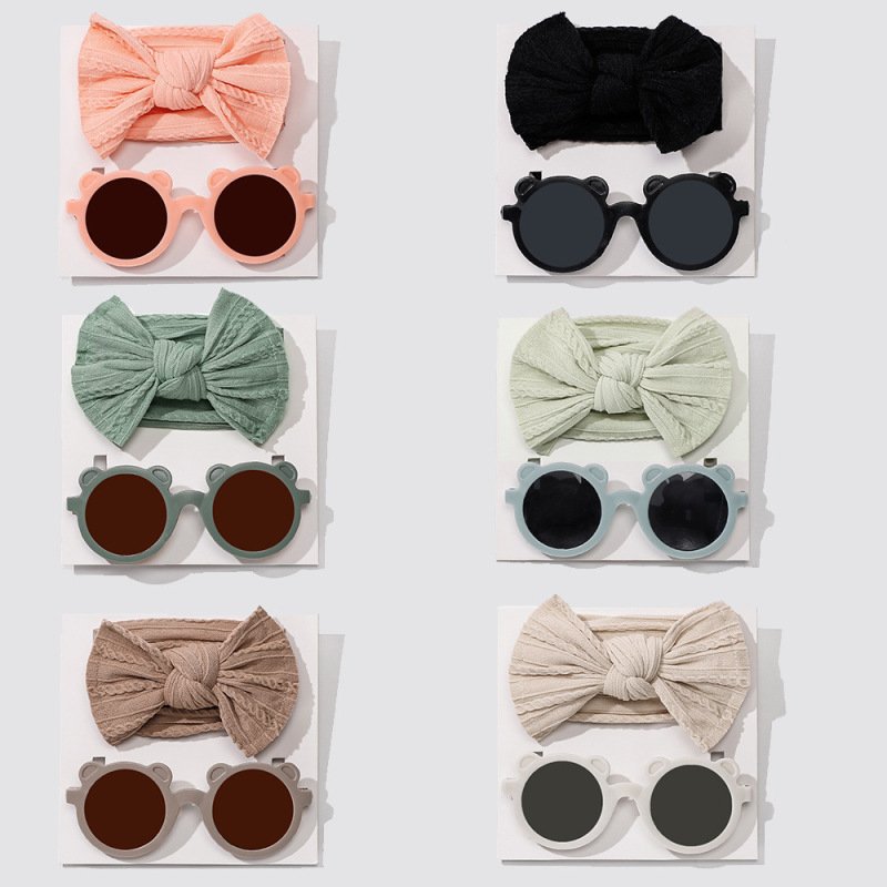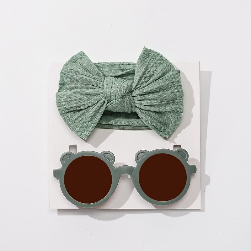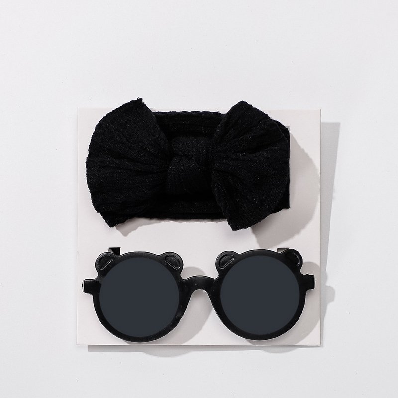 Children Kids Baby Fashion Girls Solid Color Bowknot Elastic Headband And Sunglasses Set