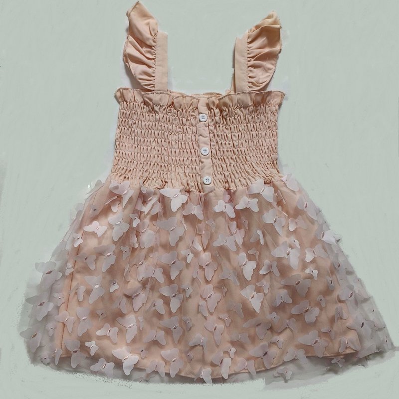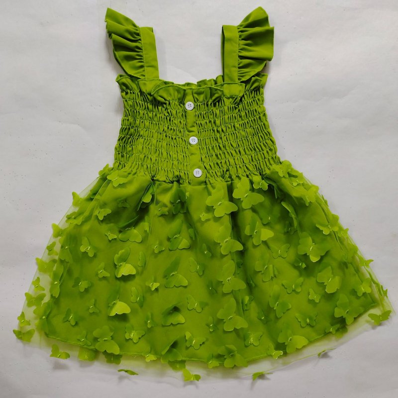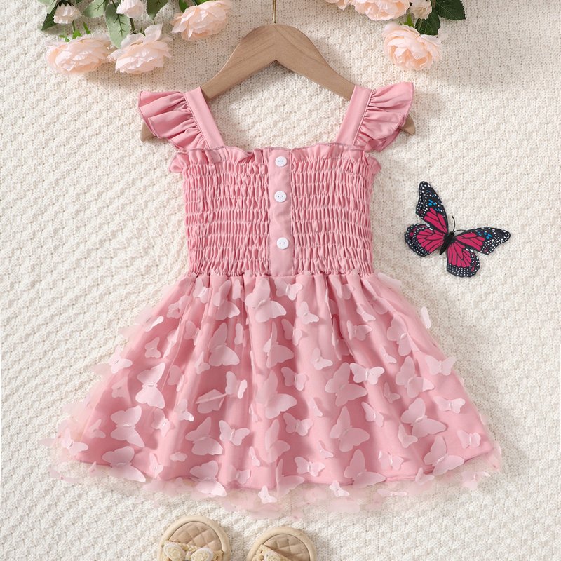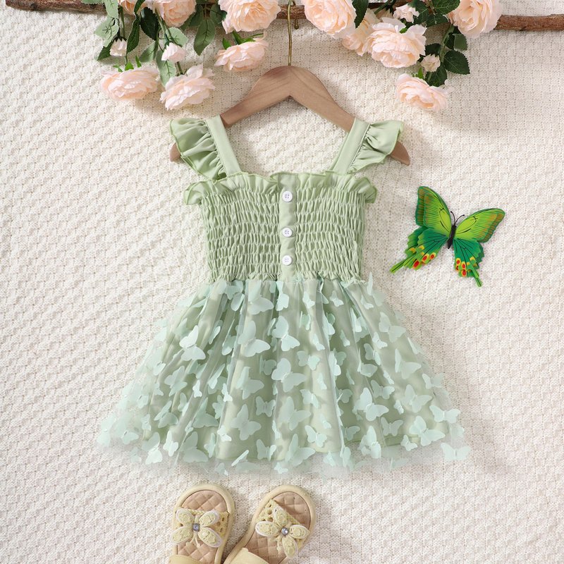 Children Kids Baby Fashion Girls Solid Color Butterfly Ruffle Sleeve Princess Dress