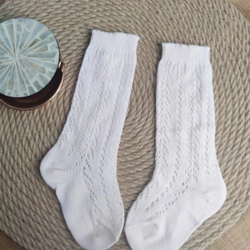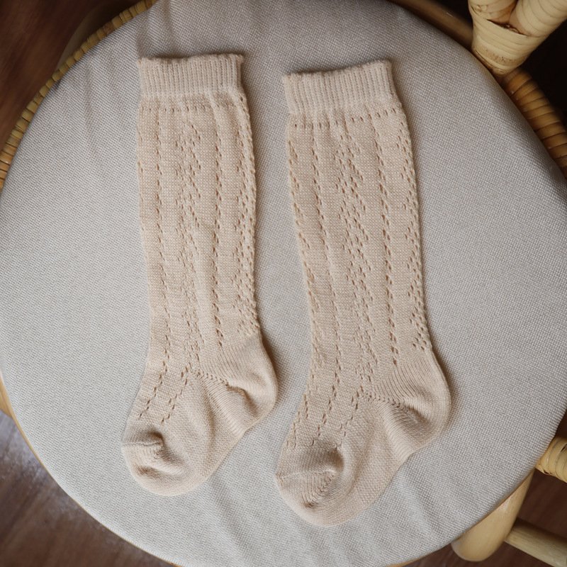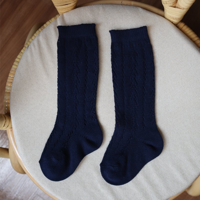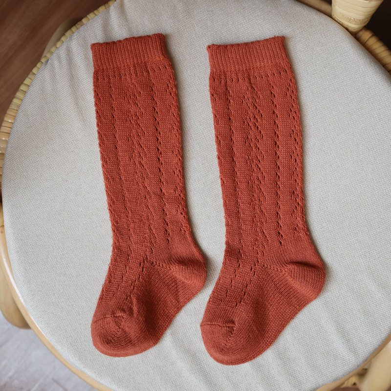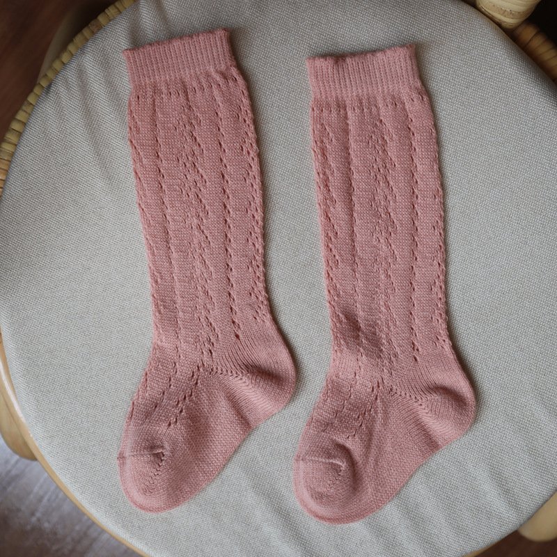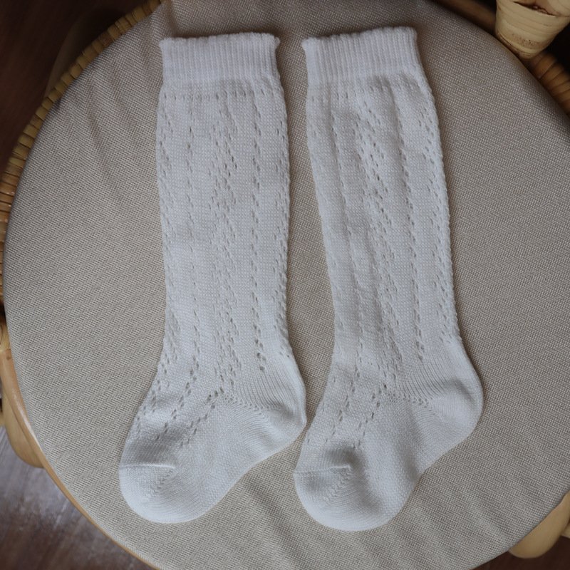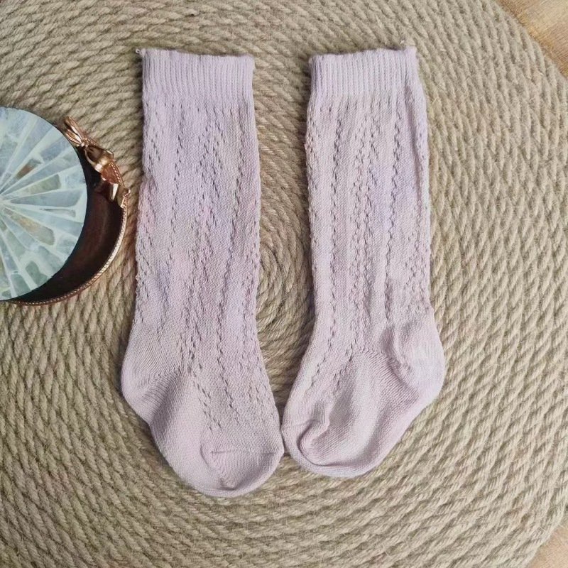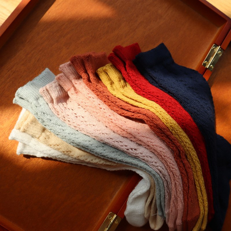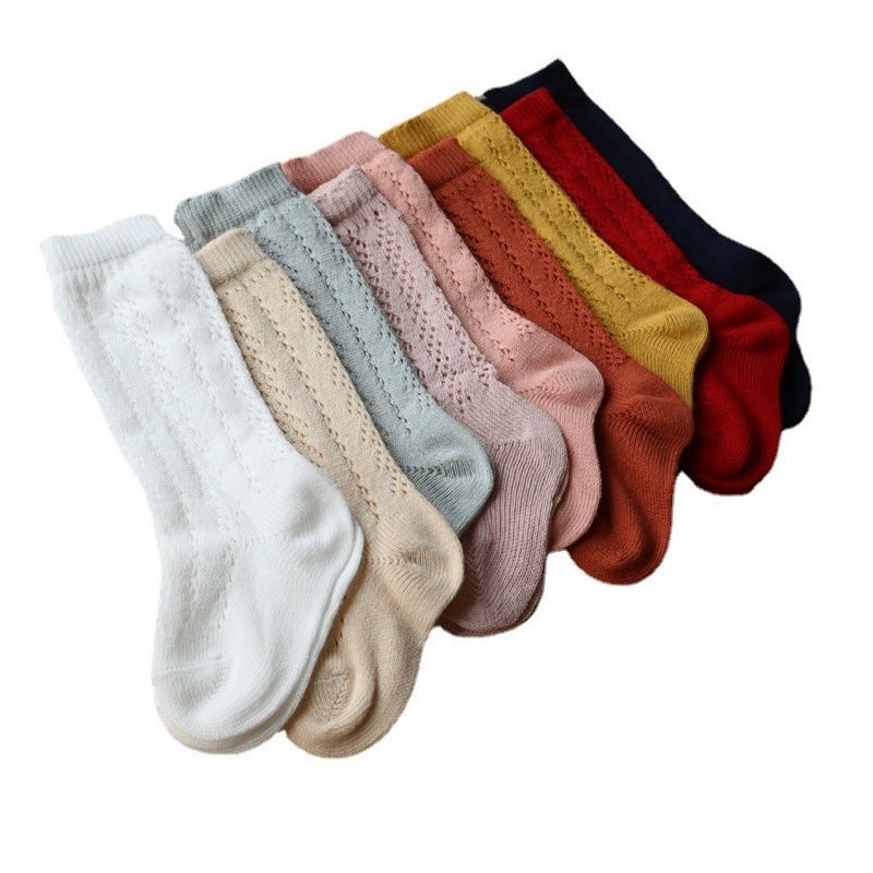Children Kids Baby Fashion Girls Solid Color Hollowed Out Mid-Length Socks