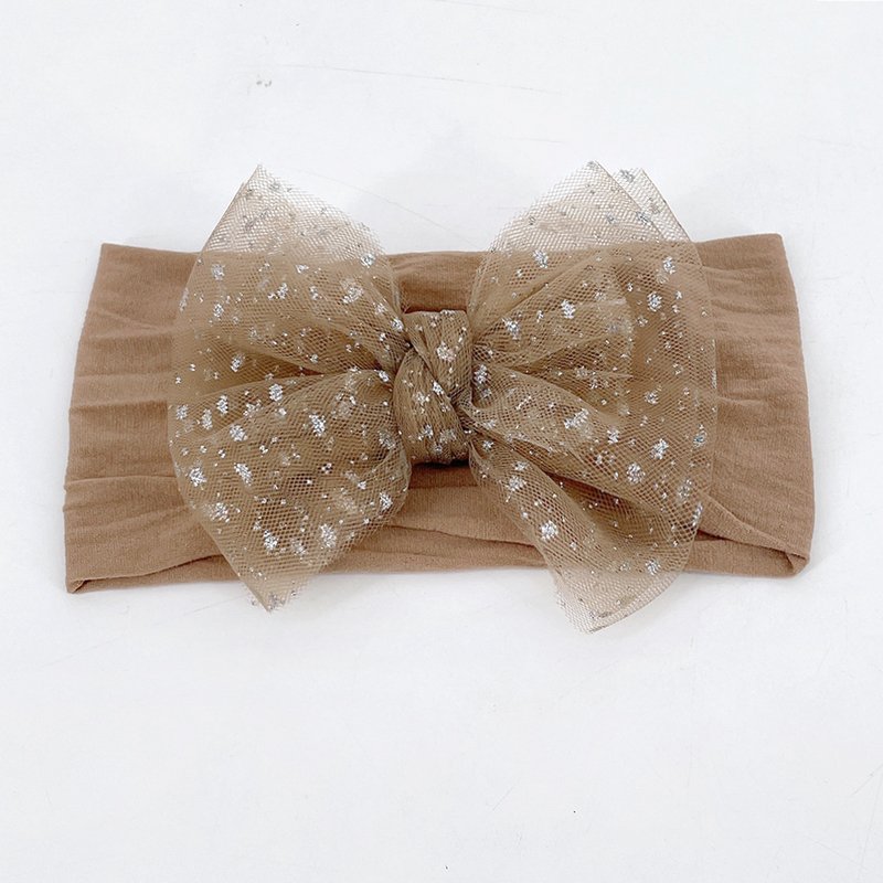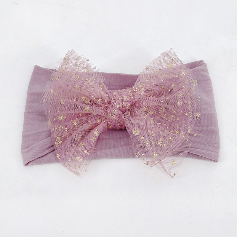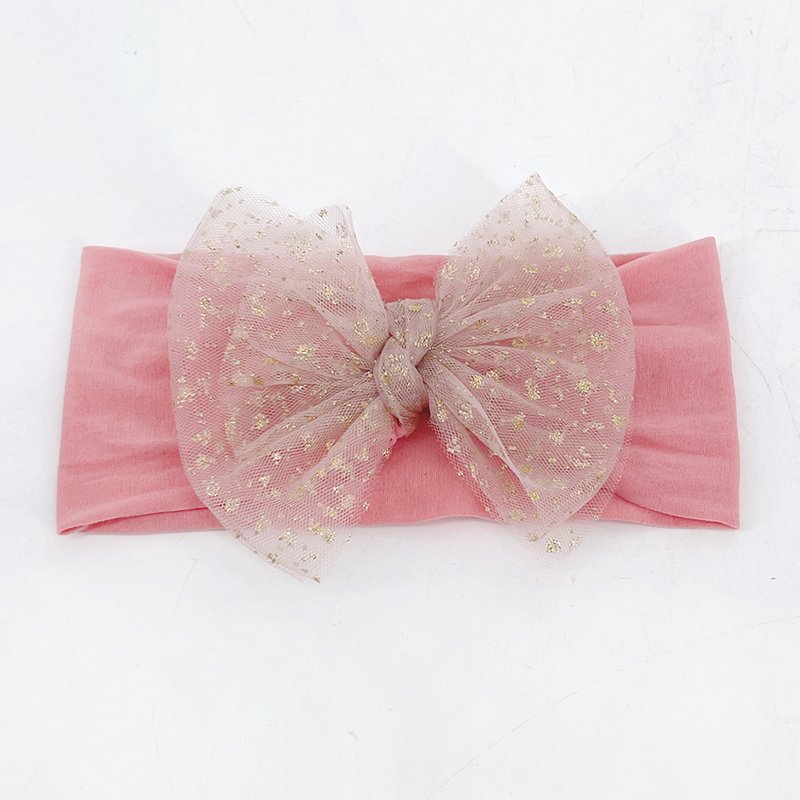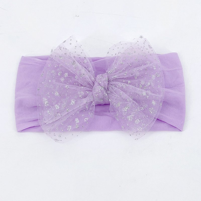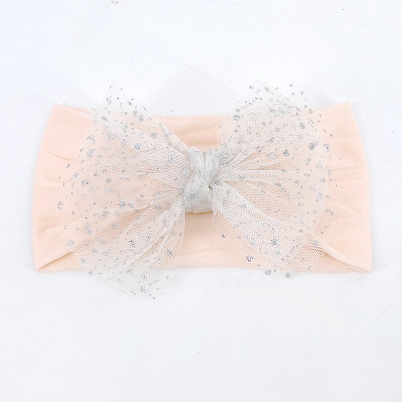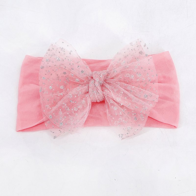 Children Kids Baby Fashion Girls Solid Color Mesh Bowknot Nylon Headband