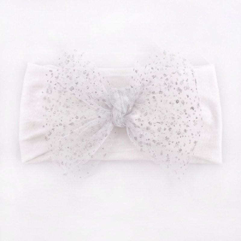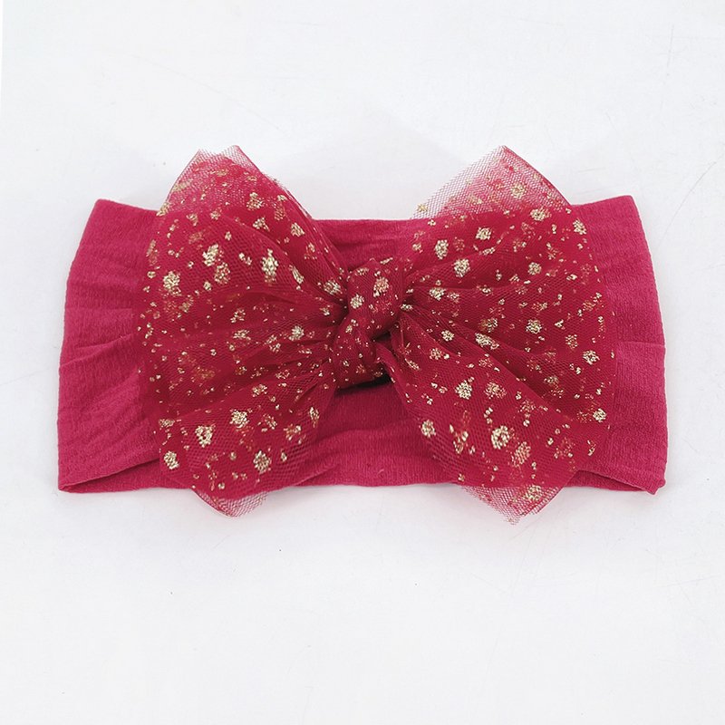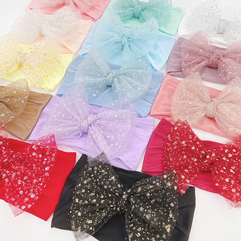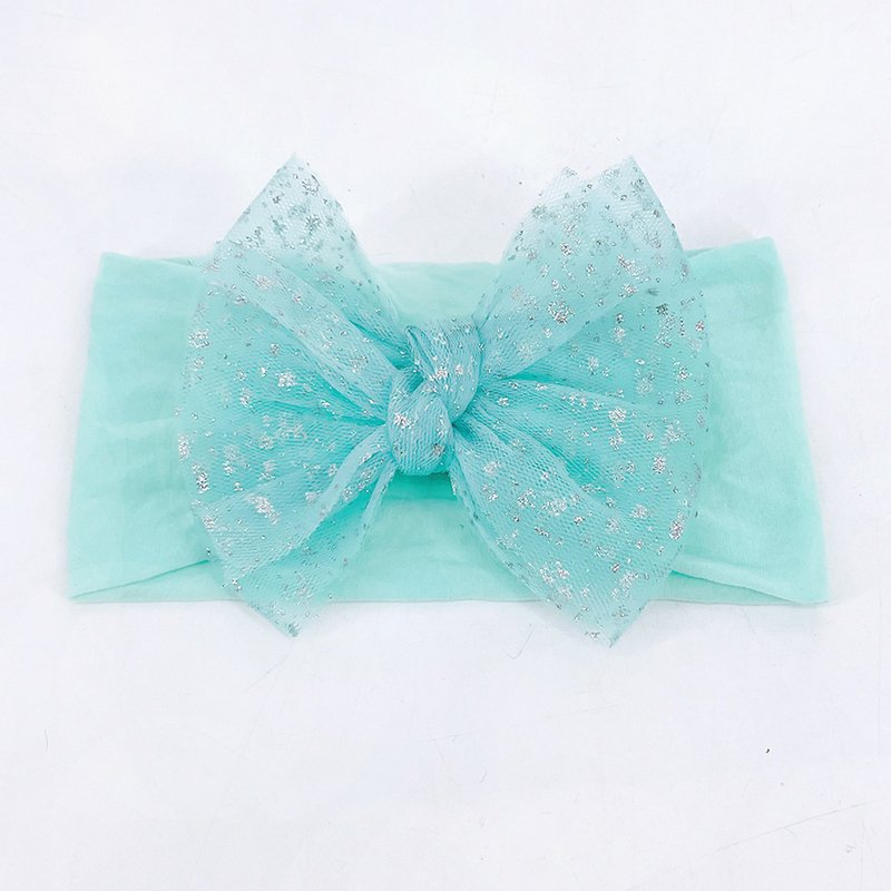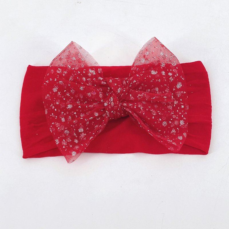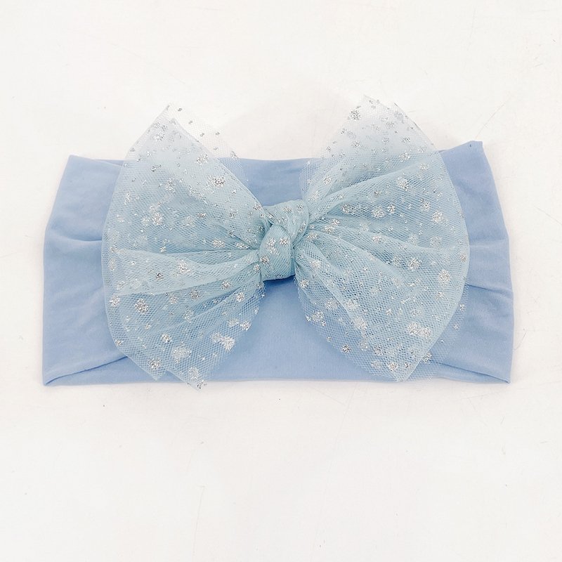 Children Kids Baby Fashion Girls Solid Color Mesh Bowknot Nylon Headband