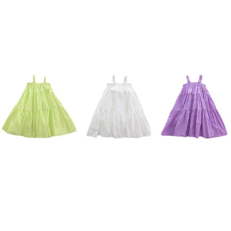 Children Kids Baby Fashion Girls Suspender Solid Color Princess Dress