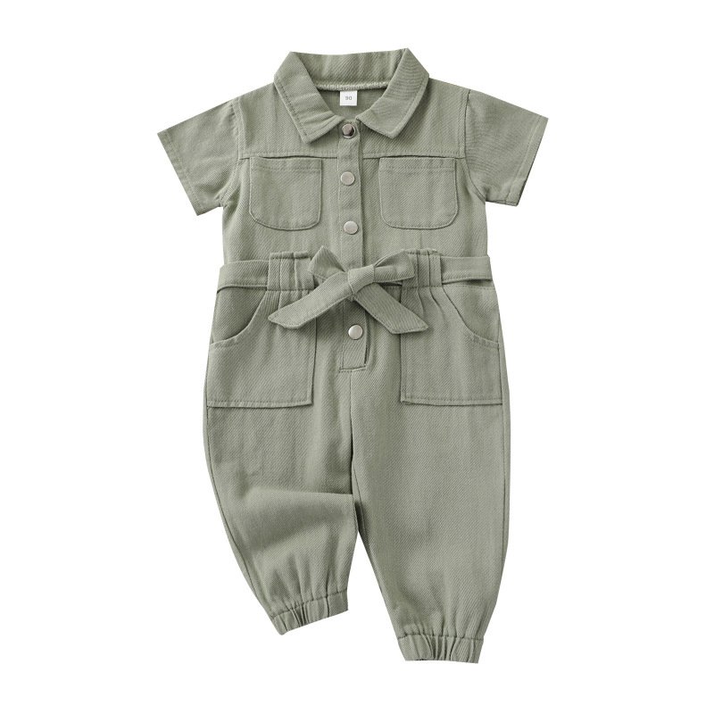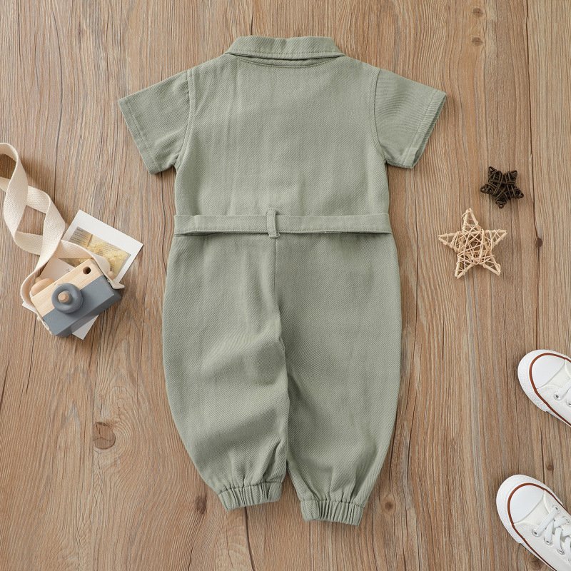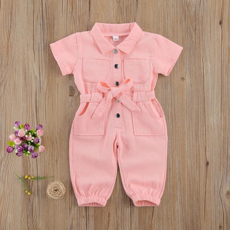 Children Kids Baby Fashion Short Sleeve Solid Color Romper