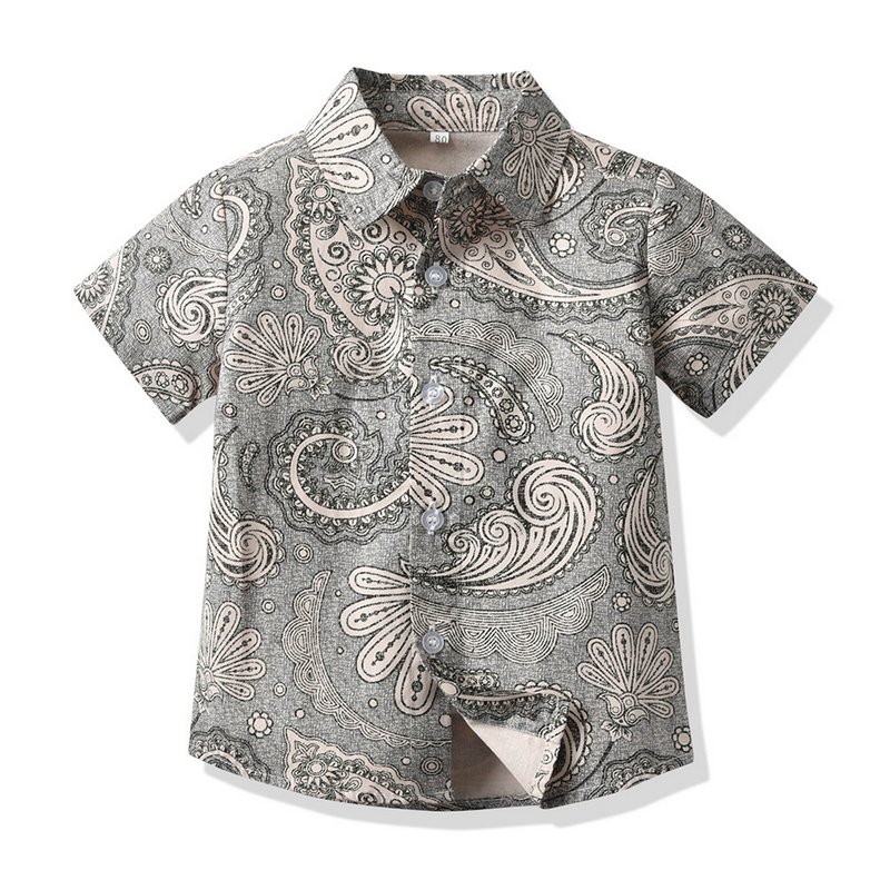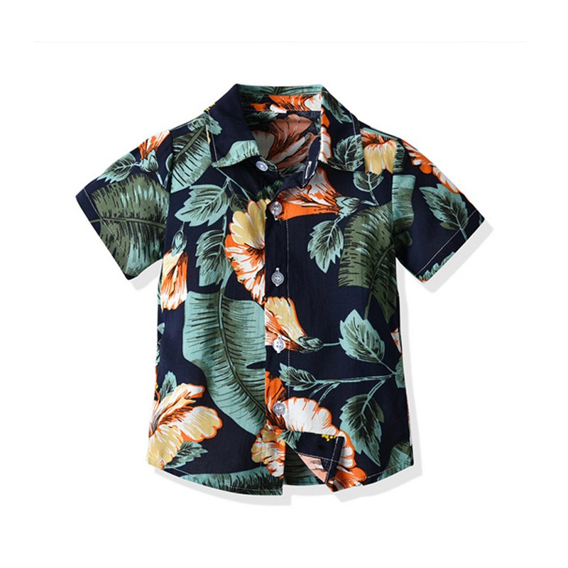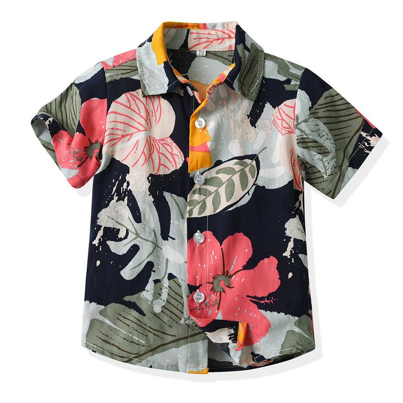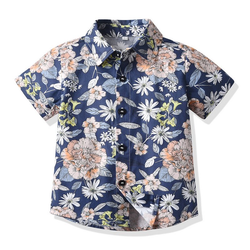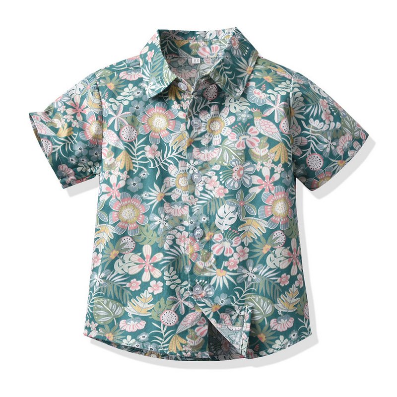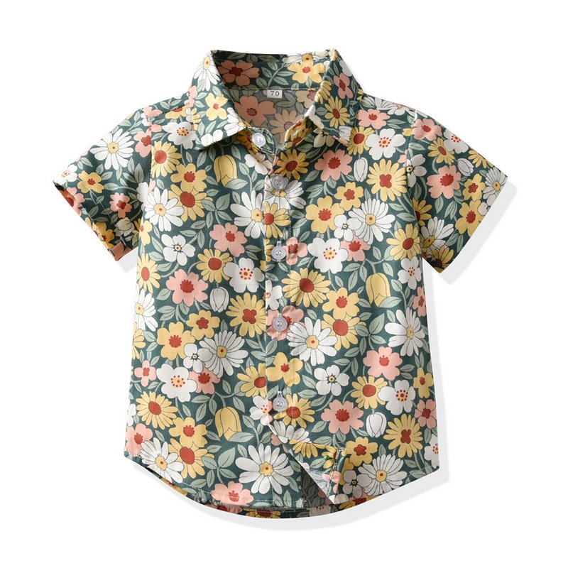 Children Kids Fashion Casual Vacation Cotton Lapel Floral Print Single-Breasted Short-Sleeved Top