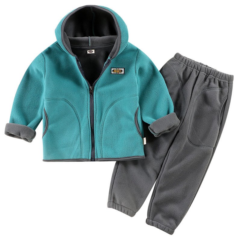 Children Kids Toddler Boys Girls Fall Winter Polar Fleece Hooded Two-Piece Set