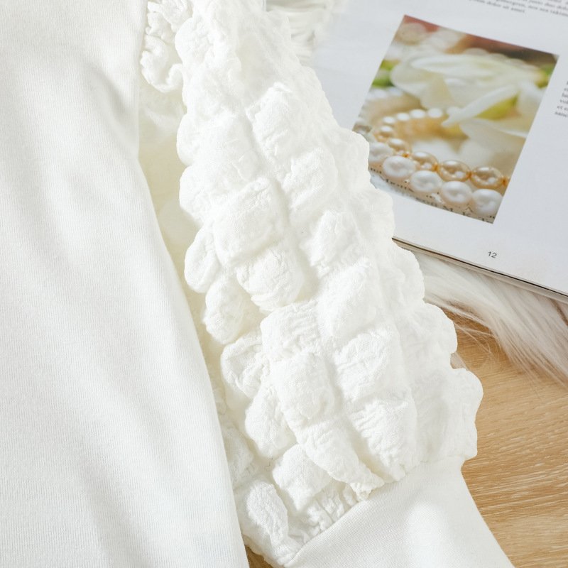 Children Kids Toddler Girls Solid Color Puff Sleeve Top And Plaid Skirt 2pcs Set