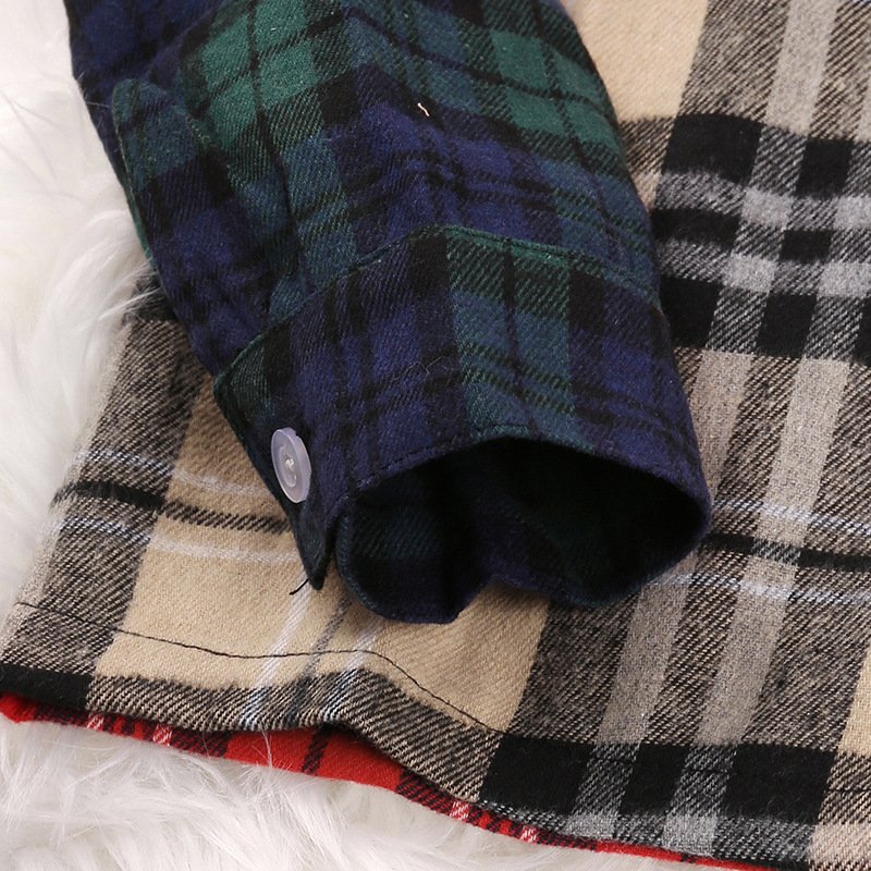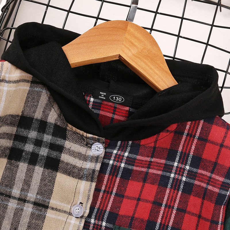 Children Kids Toddlers Boys Colorblock Plaid Long-Sleeved Hooded Shirts
