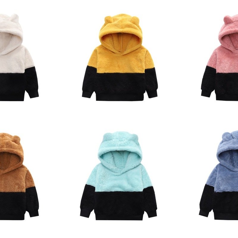 Children Kids Toddlers Boys Girls Color Matching Long-Sleeved Plush Hoodies