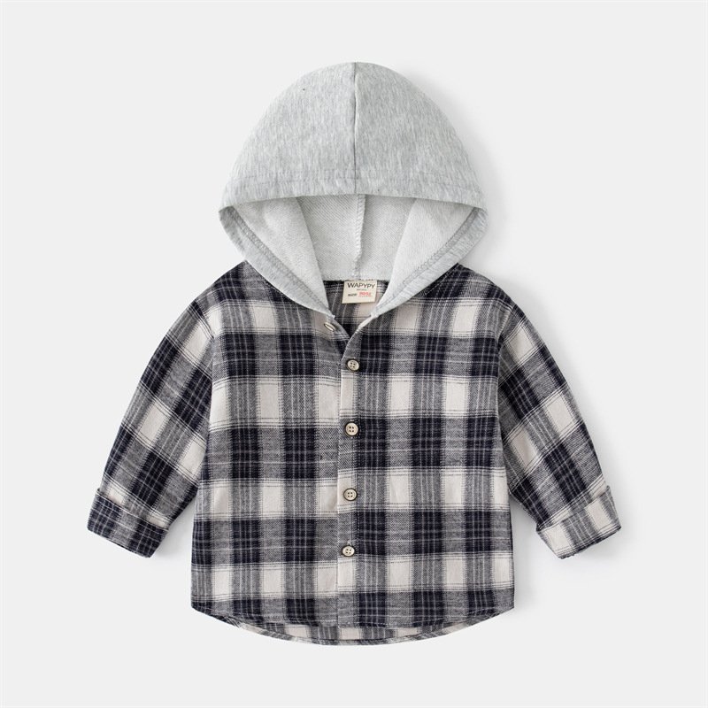 Children Kids Toddlers Boys Long Sleeve Plaid Hooded Shirts