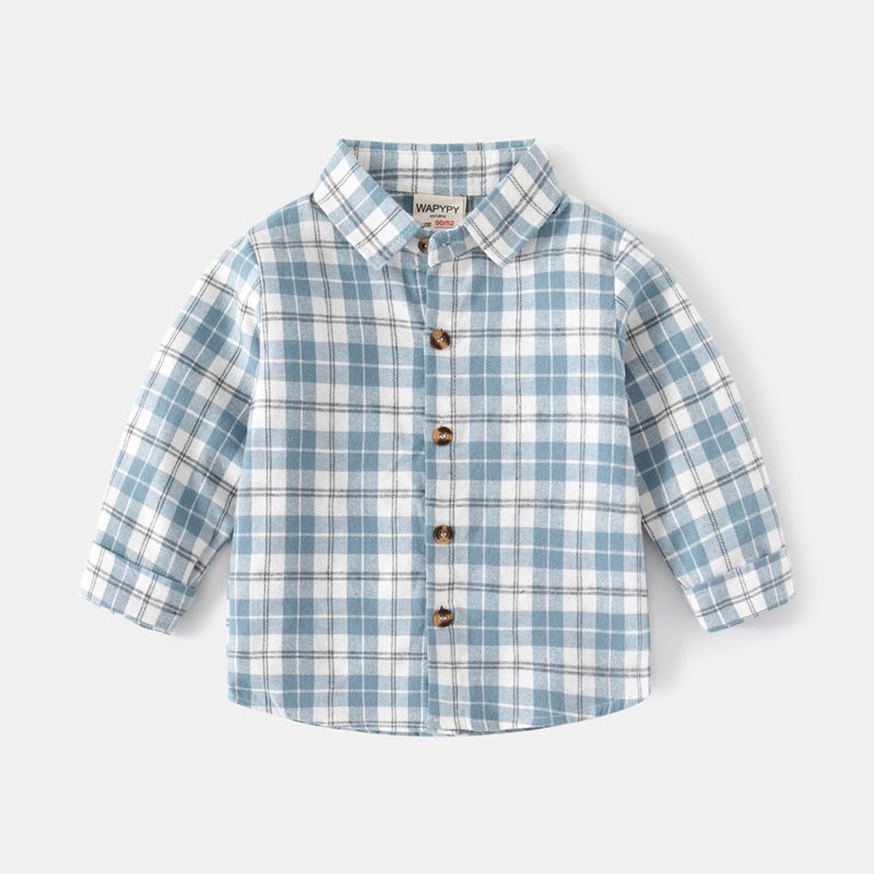 Children Kids Toddlers Boys Long-Sleeved Plaid Shirt