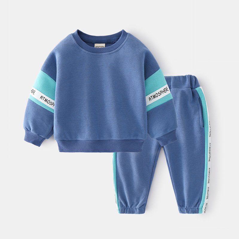 Children Kids Toddlers Boys Long-Sleeved Round Neck Stripe Sweatshirt And Pants 2pcs Set