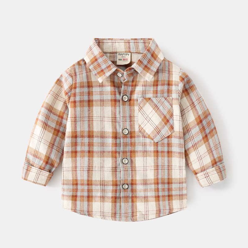 Children Kids Toddlers Boys Plaid Long Sleeve Shirt