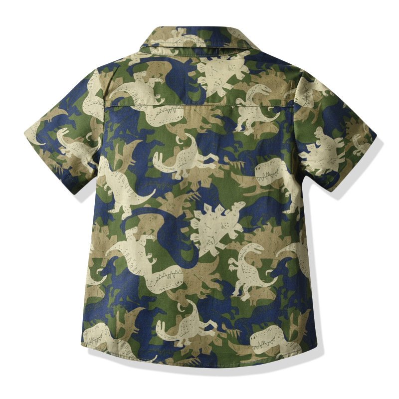 Children Kids Toddlers Fashion Boys Dinosaur Print Short Sleeve Shirt
