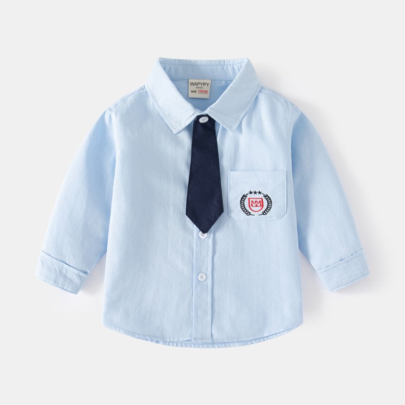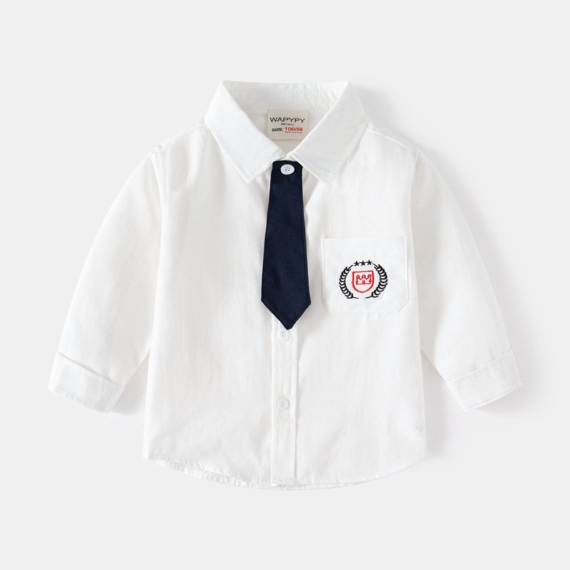 Children Kids Toddlers Fashion Boys Long Sleeve Embroidery Tie Shirt