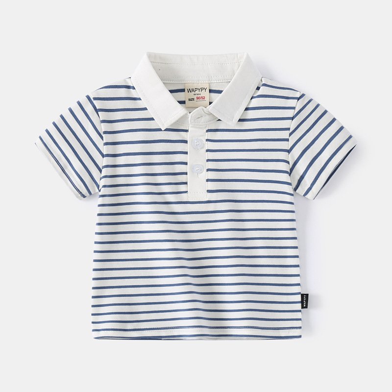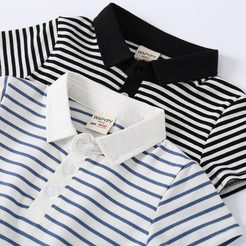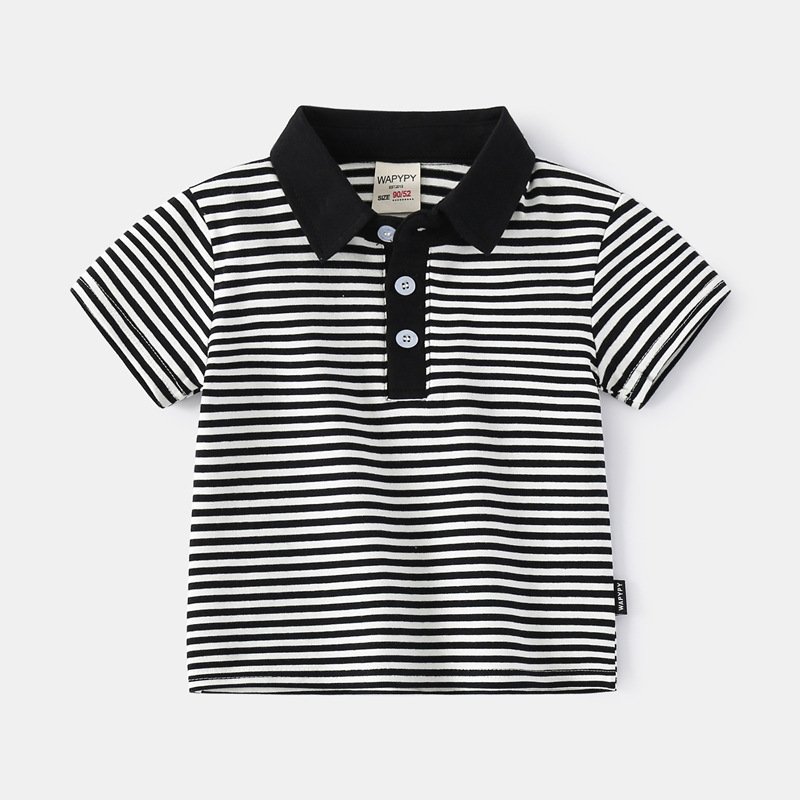 Children Kids Toddlers Fashion Boys Stripes Print Short Sleeve Polo Shirt