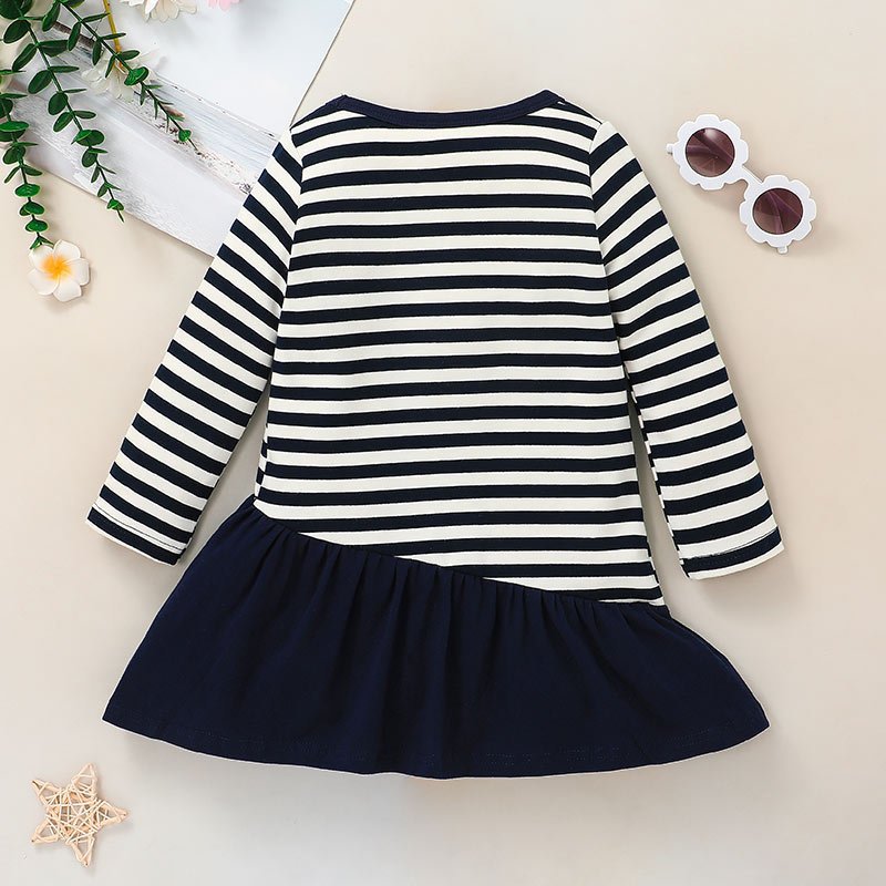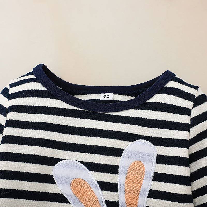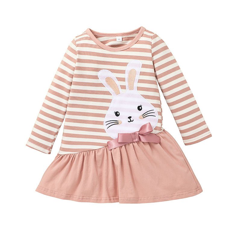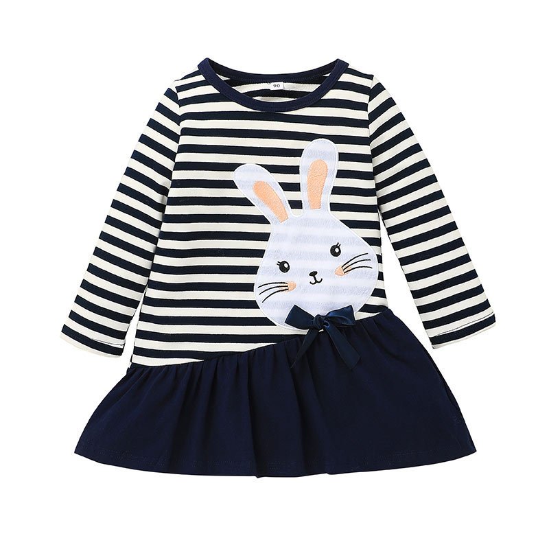 Children Kids Toddlers Fashion Girls Long Sleeve Patchwork Rabbit Stripe Dress