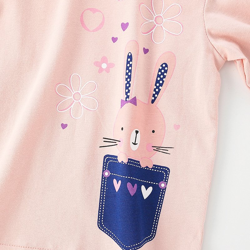 Children Kids Toddlers Fashion Girls Long Sleeve Round Neck Cute Rabbit Print T-Shirt
