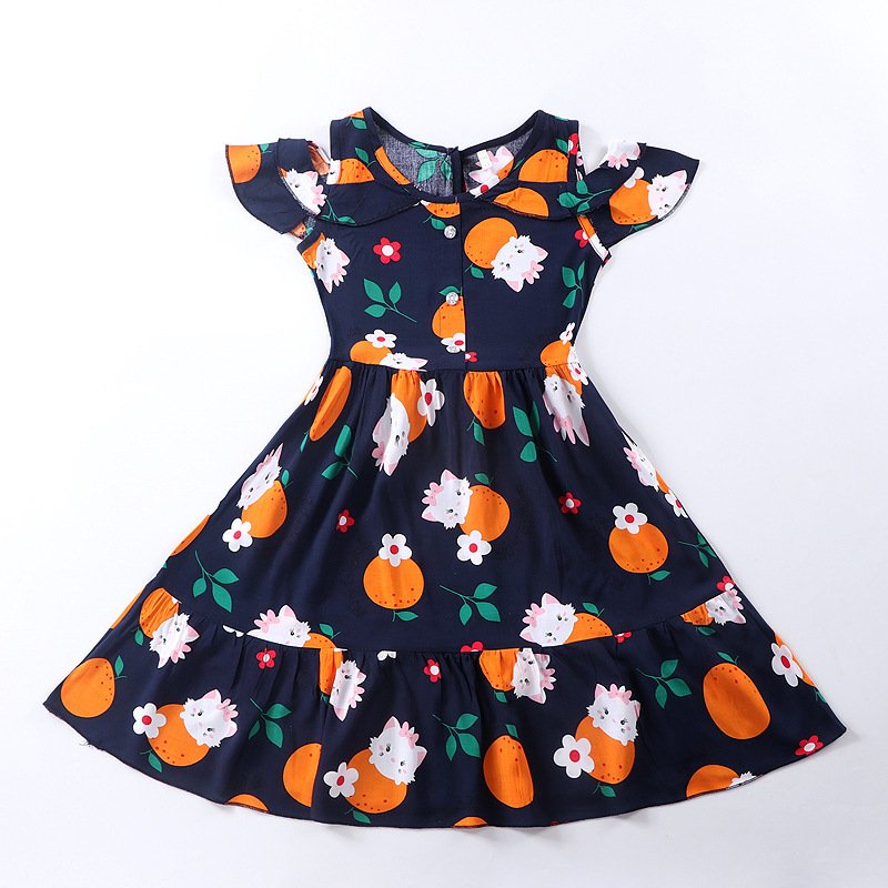 Children Kids Toddlers Fashion Girls Open Shoulder Print Casual Dress