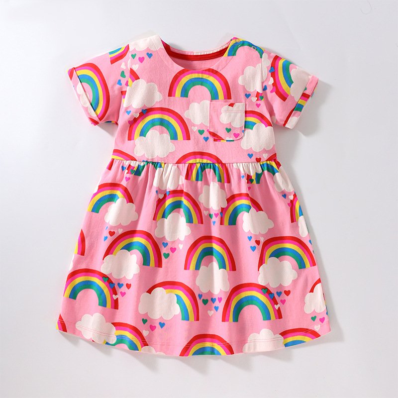 Children Kids Toddlers Fashion Girls Short Sleeve Rainbow Dress